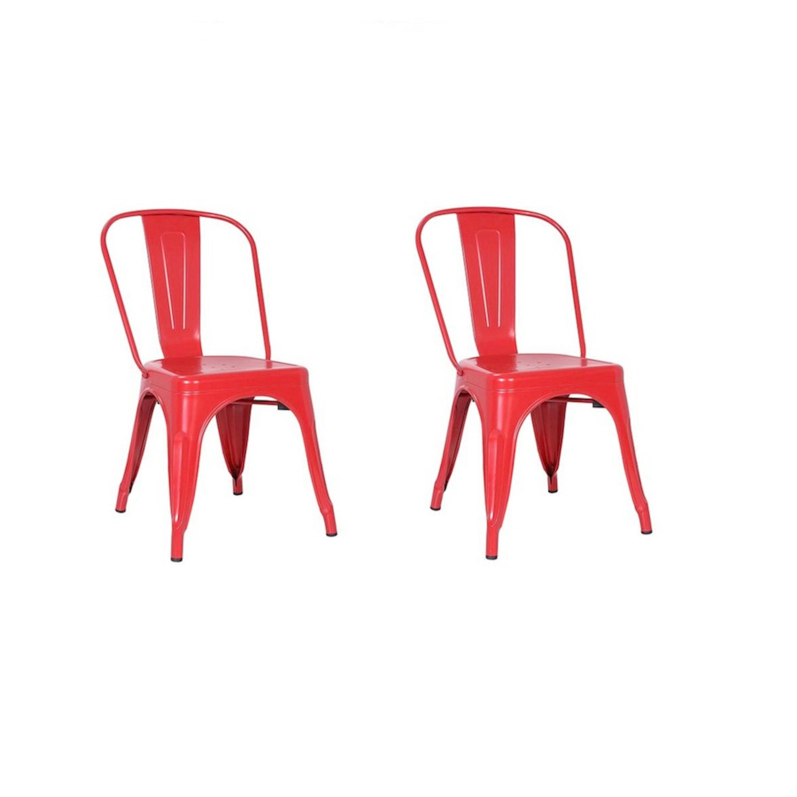 - Glossy Red Tolix Metal Stack Industrial Chic Dining Chair Commercial Qual. 1,2,4