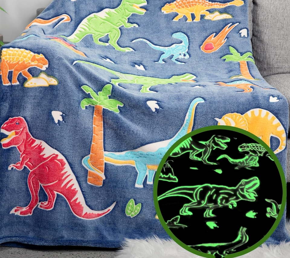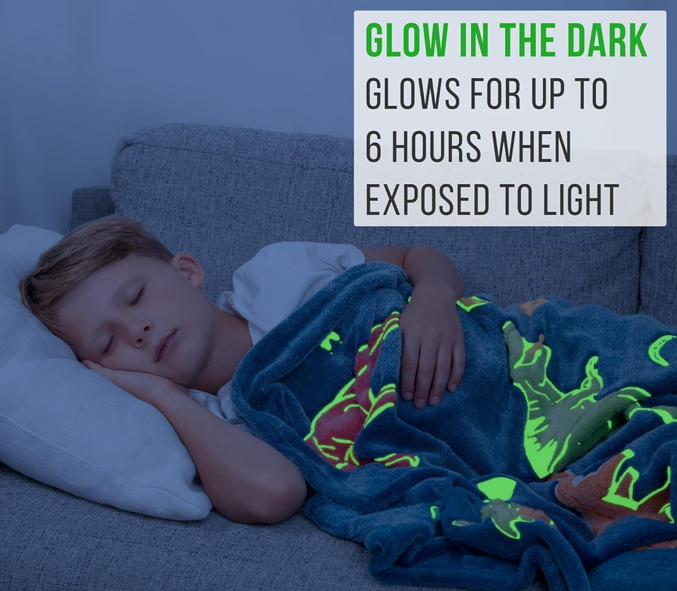- Glow in the Dark Dinosaur Blanket 50x60 Fleece Throw for Kids Cozy Bedtime Gift
