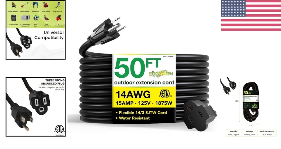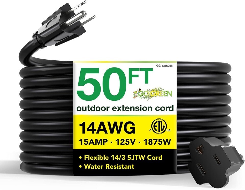 - GoGreen Power 14/3 50ft Heavy-Duty Outdoor Extension Cord – Rugged & Reliable