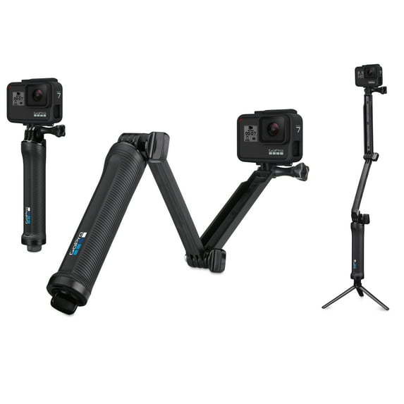 This ultra-versatile GoPro 3-Way Grip-Arm-Tripod can be used in three main ways: as a camera grip, extension arm, or tripod. The folding arm is perfect for POV or follow-cam footage and makes it easy to capture selfies without the mount appearing in the shot. When detached from the arm, the handle doubles as a lightweight camera grip. Stored inside the handle is a small tripod that can be removed and used on its own or combined with the handle. This 3-way tripod extends to 20" and collapses to 7.5", so you can get good, stable shots of almost anything, no matter where you are. Easy to pack away thanks to the innovative design, this mount is a good gift to anyone with a GoPro who wants more ways to use it.
