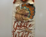 A great humerous decoration for your kitchen.. this is topped in a cream color yarn and edged in rust brown with a Turkey/Pumpkin Button.