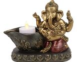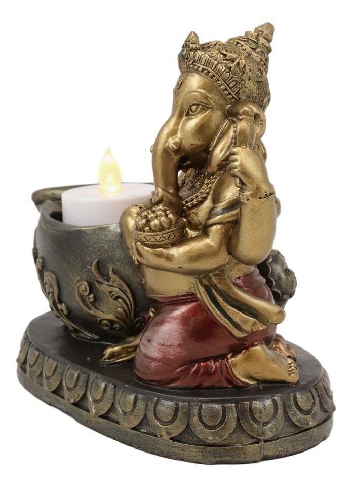 God Ganesha With Modaka Bowl Kneeling By Well Votive Candle Holder Statue Decor