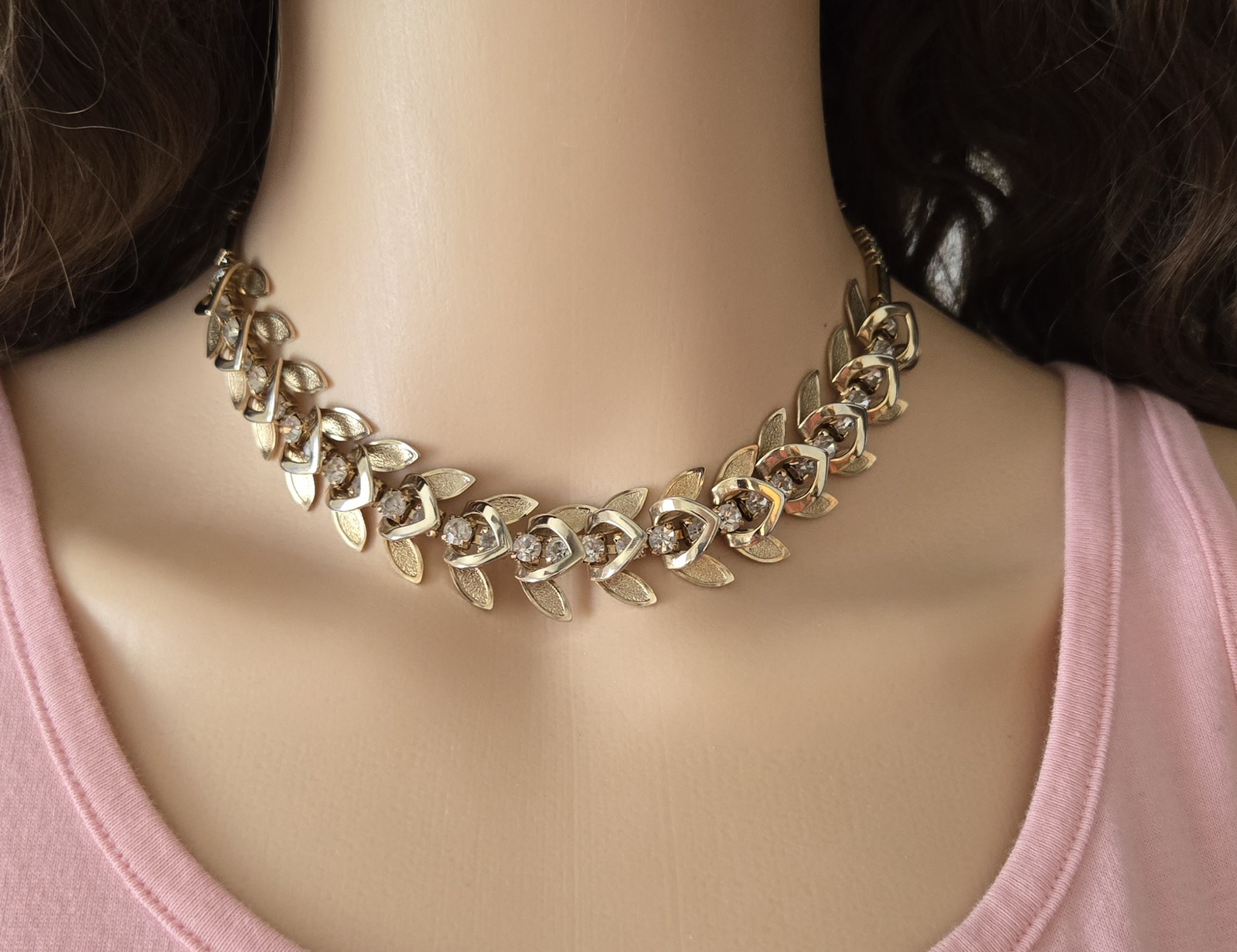 Gold & Clear Rhinestone EMJ Choker Necklace