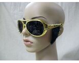 Gold Elvis Style Costume Glasses w/ Black Sideburns Rockstar King Rock 50s 60s