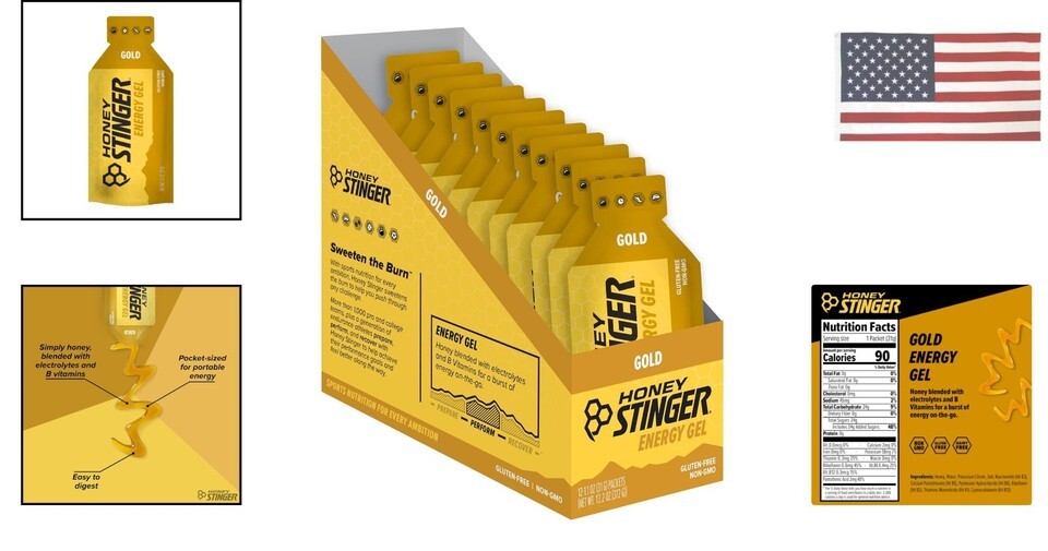 - Gold Energy Gel 12 Pack, Honey-Based, Gluten Free & Caffeine Free, 1.1 oz Eac...