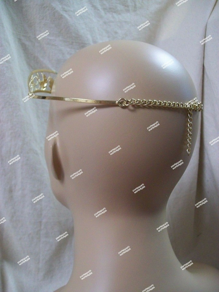 Antique Gold Tone. Leaf accents. Fancy Renaissance Maiden Circlet Costume Crown / Tiara / Headpiece. Adult: One size fits Most. Adjustable chain. Not intended for ages under 14. Delicate Metal can be carefully bent gently shaped if desired. Could be used by Male or Female. DOES NOT INCLUDE MANNEQUIN.