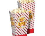 These 0.8 ounce popcorn boxes will stand up on their own and can be used to "scoop" popcorn out of the machine for fast serving. Product 1.25-oz. scoop box, packaged 500 per case. Dimensions 3.5" x 2.5" x 6.25". Graphics may vary slightly from image shown and are subject to change without notice. Custom printing on boxes is not available. Box capacity 0.8 oz. net weight. Easy-to-fill boxes stand up on their own.