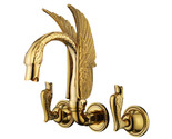 - GOLD PVD WALL MOUNTED SWAN BATHROOM SINK FAUCET SWAN HANDLES LUXURY TAP