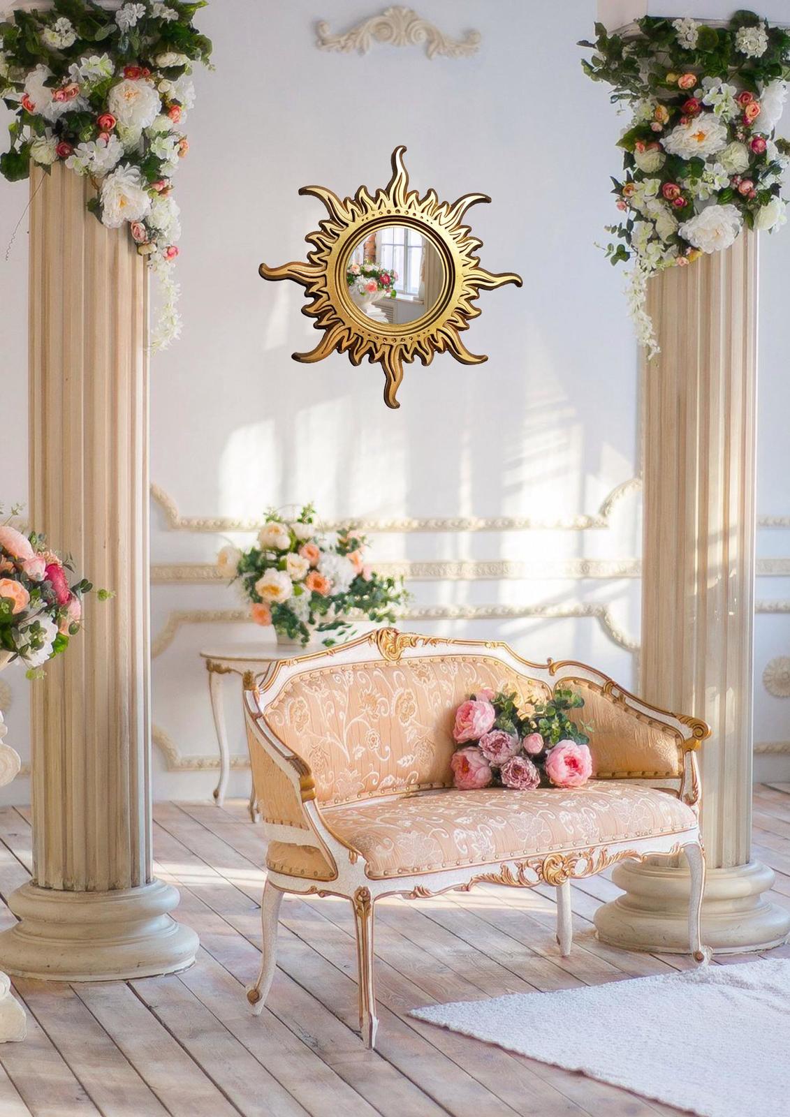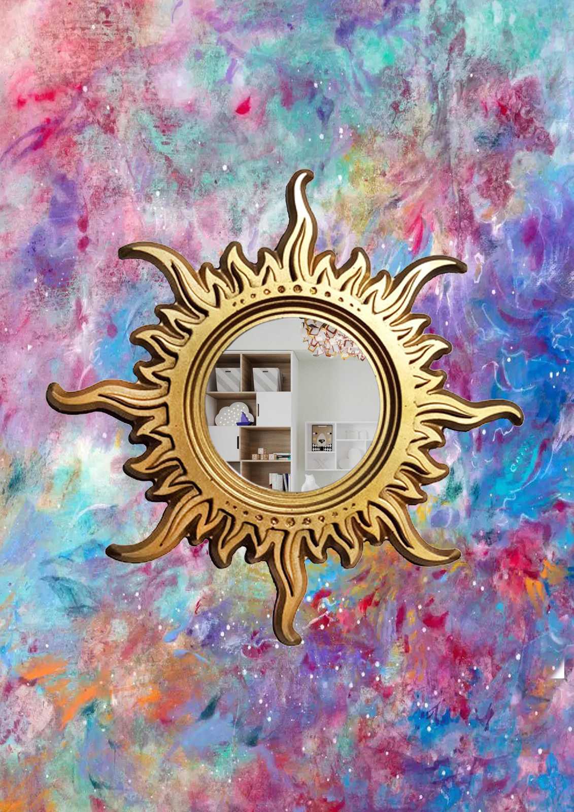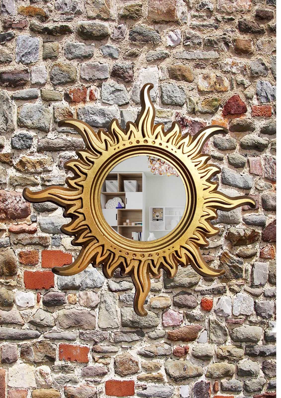 - Gold Resin Sunburst Mirror: Round Wall Decor, Handmade Art