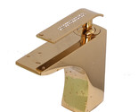 - Gold Single Hole Bathroom Sink modern square crystal Faucet Mixer tap deck mount