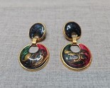 - Gold Tone Blue/Green/Red Swirl Design Circle Dangle Earrings, 1'', Vintage 1980s
