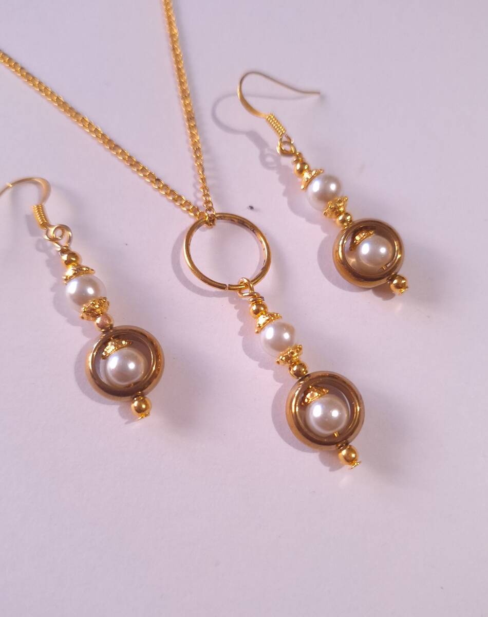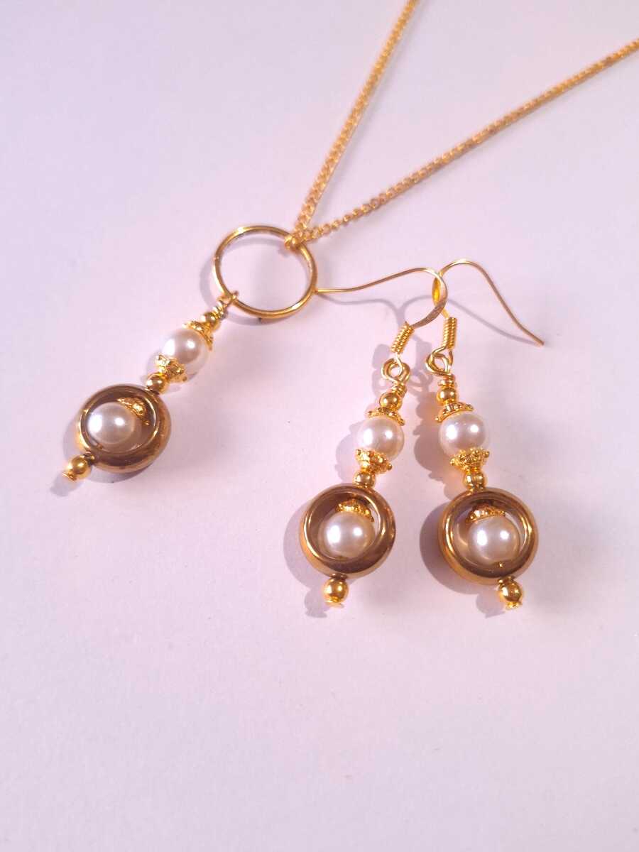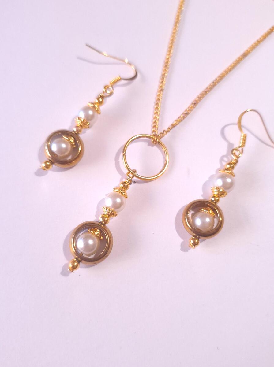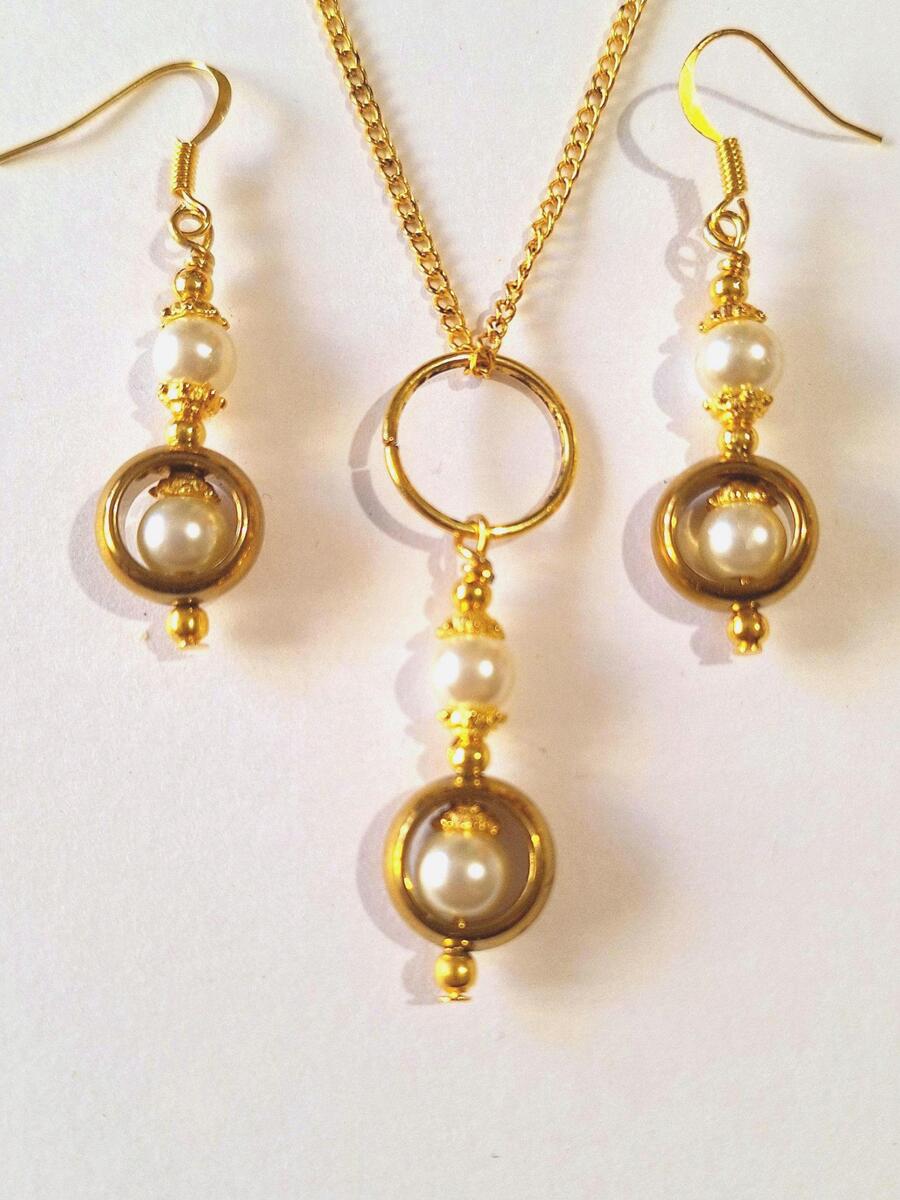 Beautiful Set of gold tone Hematite hoops and ornaments and white crystal pearl beads pendant necklace and earrings. Antique style gold tone set necklace and earrings . Gold tone crystal pearls Victorian style necklace and earrings . Boho necklace . Boho jewelry set . Boho pearl earrings . Bohemian necklace. Birthday set necklace and earrings . Gold-tone Antique style jewelry set . Bridal jewelry set. Wedding jewelry set. Birthday gift set.