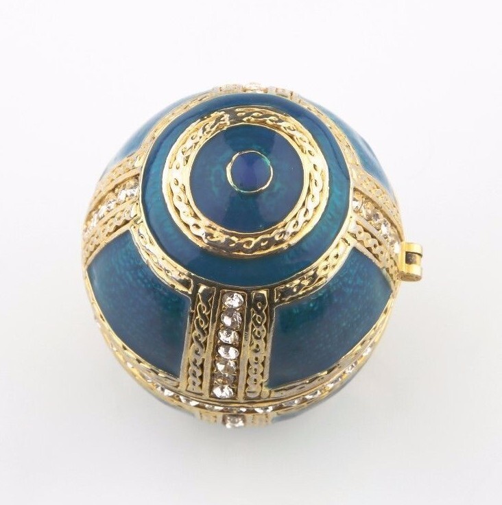Primary image for Gold-plated Enamel Hinged Egg Trinkey Box w/ Crystal Accents