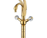 - Gold single hole bathroom basin Vessel Sink tall swan faucet tap crystal handles