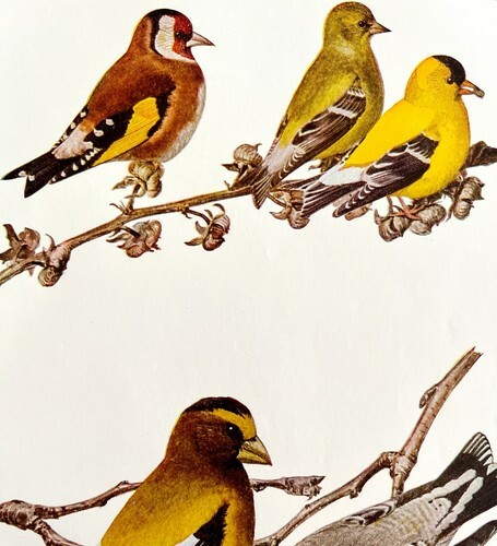 Goldfinch And Grosbeak Finch 1936 Bird Art Lithograph Color Plate Print DWU12A