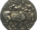 Esta replica moderna de una moneda antigua de Corcyra (actual Corfú) refleja las tradiciones numismaticas únicas del siglo VI aC, un período en que la isla era una prospera potencia marítima en el Mar Jonico. El anverso presenta un cuadrado incuse dividido en cuatro secciones, un sello distintivo de las primeras monedas griegas que probablemente sirvio tanto para un proposito practico, asegurando el peso y la autenticidad de la moneda, como simbolico, posiblemente representando el gobierno estructurado de la ciudad o sus cuatro distritos principales?. Corcyra, fundada como una colonia de Corinto, fue un jugador clave en las primeras redes comerciales griegas, a menudo mediando entre las colonias occidentales y el continente griego durante el período arcaico, una epoca de creciente intercambio cultural y rivalidad, como se ve en sus conflictos posteriores con Corinto que condujeron a la Guerra del Peloponeso. El reverso muestra un toro con la cabeza hacia atras, un motivo común en las monedas de Corcyra que simbolizaba la fuerza y ??la prosperidad agrícola, lo que refleja las tierras fertiles de la isla y su dependencia de la agricultura junto con el comercio marítimo?. La inscripcion "???????" (Korkyra) rodea el diseño, declarando con orgullo el origen de la moneda y vinculandola a la identidad de la ciudad como una potencia naval significativa en el mundo antiguo. El toro tambien tenía un significado religioso, a menudo asociado con ofrendas a deidades como Poseidon, el dios del mar, a quien Corcira honro debido a su cultura marinera. Esta pieza novedosa, aunque no es un artefacto original, ofrece a los coleccionistas una conexion tangible con la historia temprana de la acuñacion griega y la importancia estrategica de Corcira en el antiguo Mediterraneo, por lo que es una valiosa adicion para los entusiastas de la numismatica arcaica.