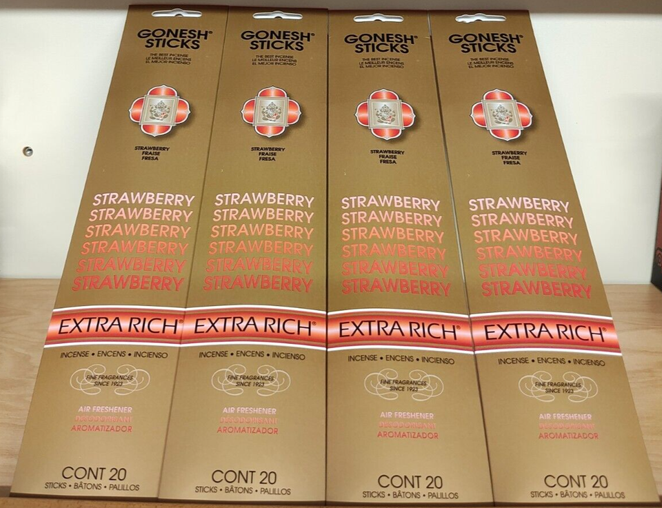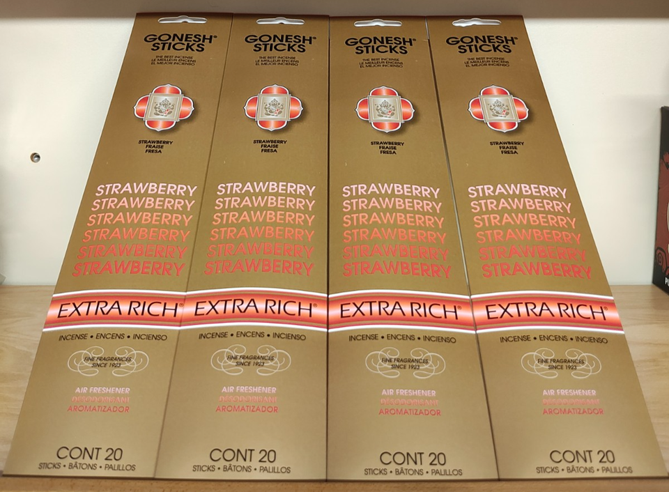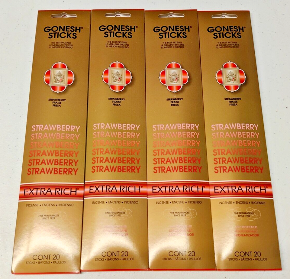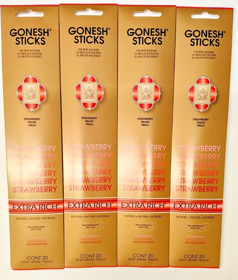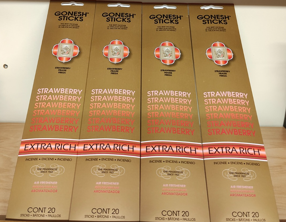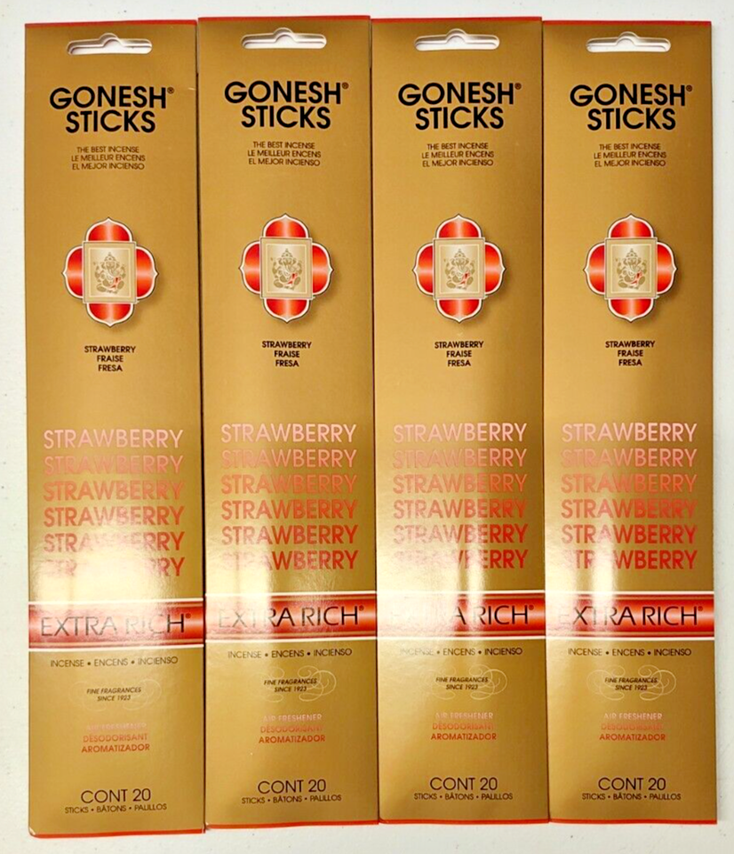 - Gonesh Incense Sticks Extra Rich-4 Packs-80 sticks total-Strawberry