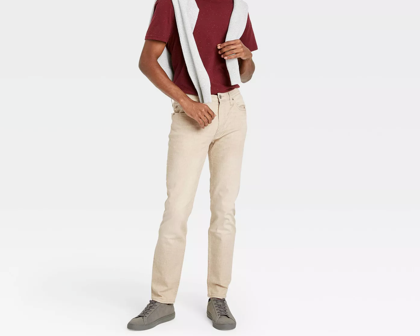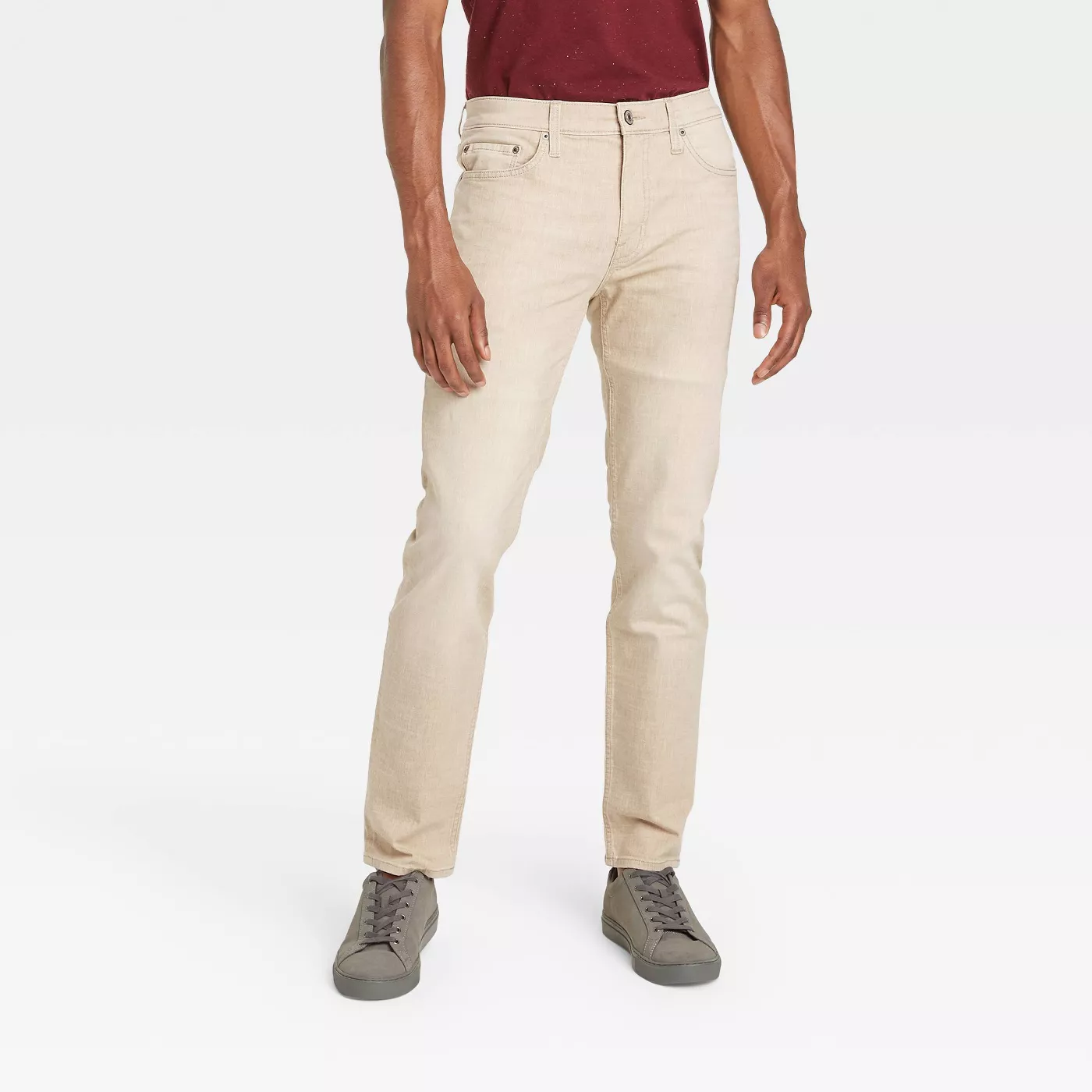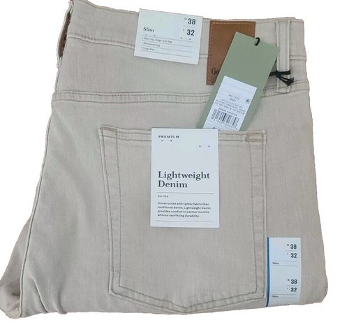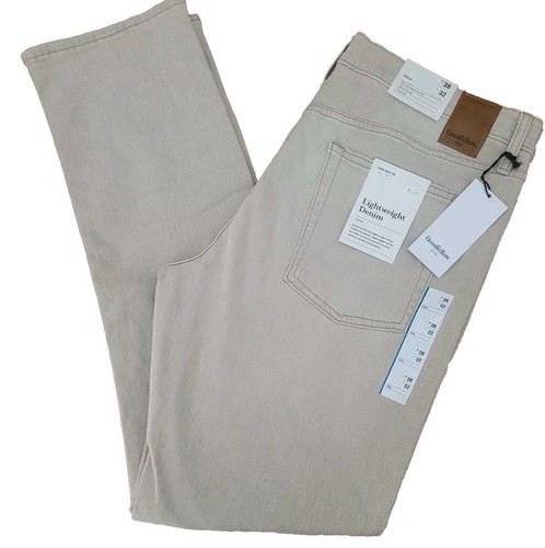 This Sale is for One (1) Pair of Goodfellow Co? Lightweight Denim Jeans Light wash ~ Jeans British Khaki in Color 38" Waist 32? Inseam Slim hip thigh leg Slimmest leg Total Flex Five (5) pocket jeans Blended Fabric of 98% Cotton ~ 2% Elastane Machine wash ~ Tumble dry These jeans are new with tags Please view photos for a good description of this item Thank you!