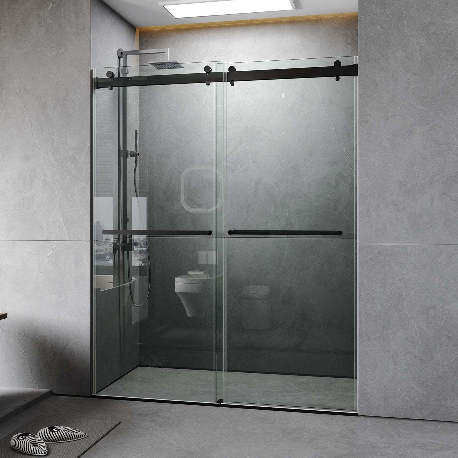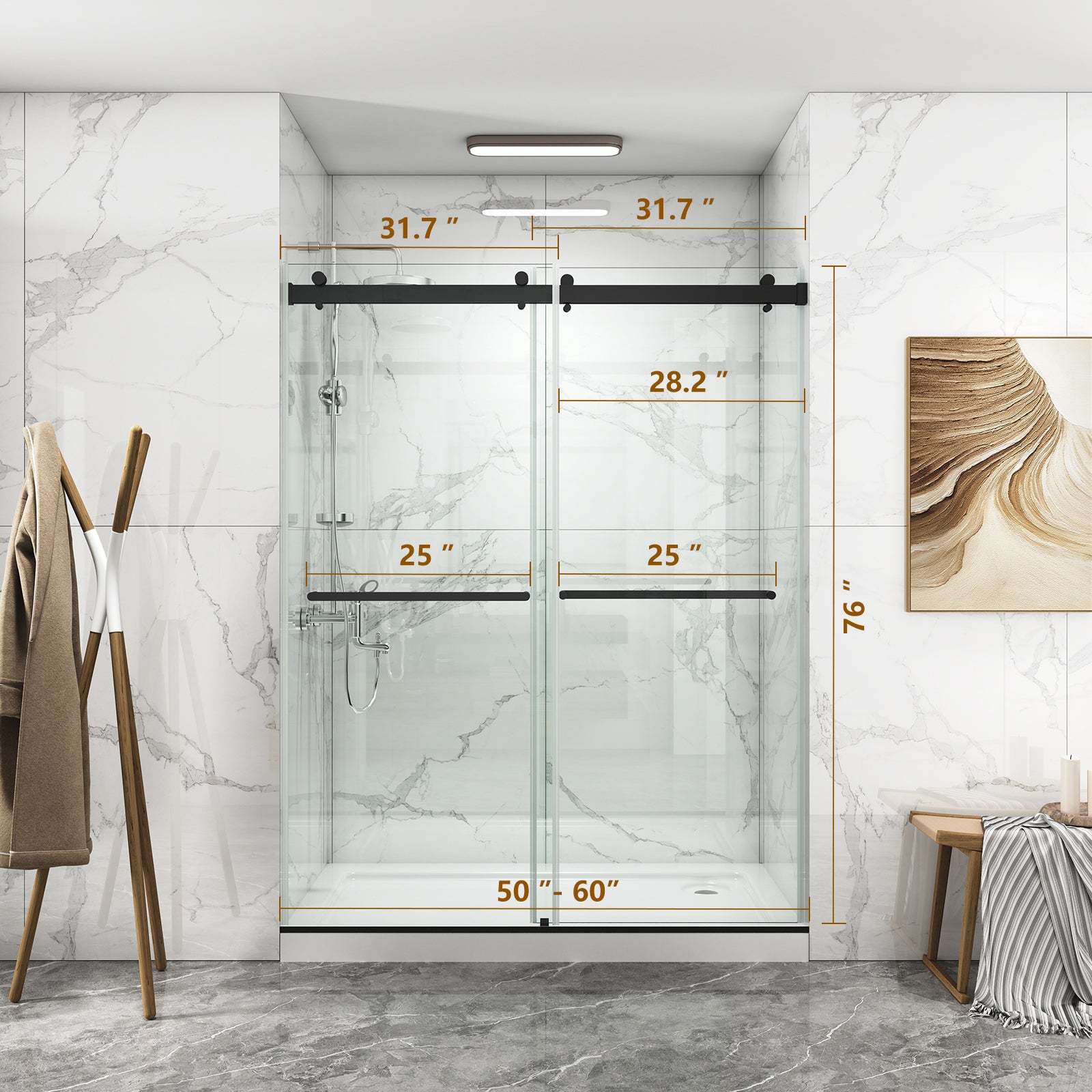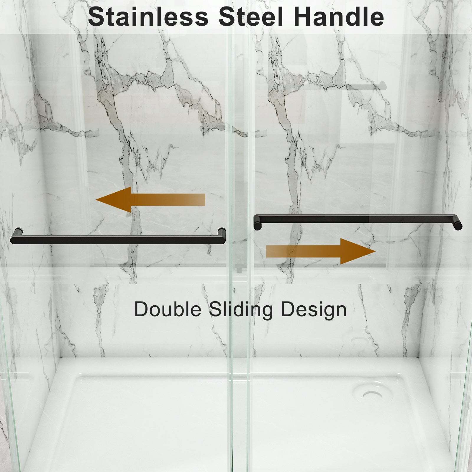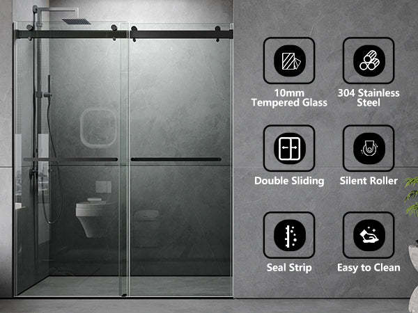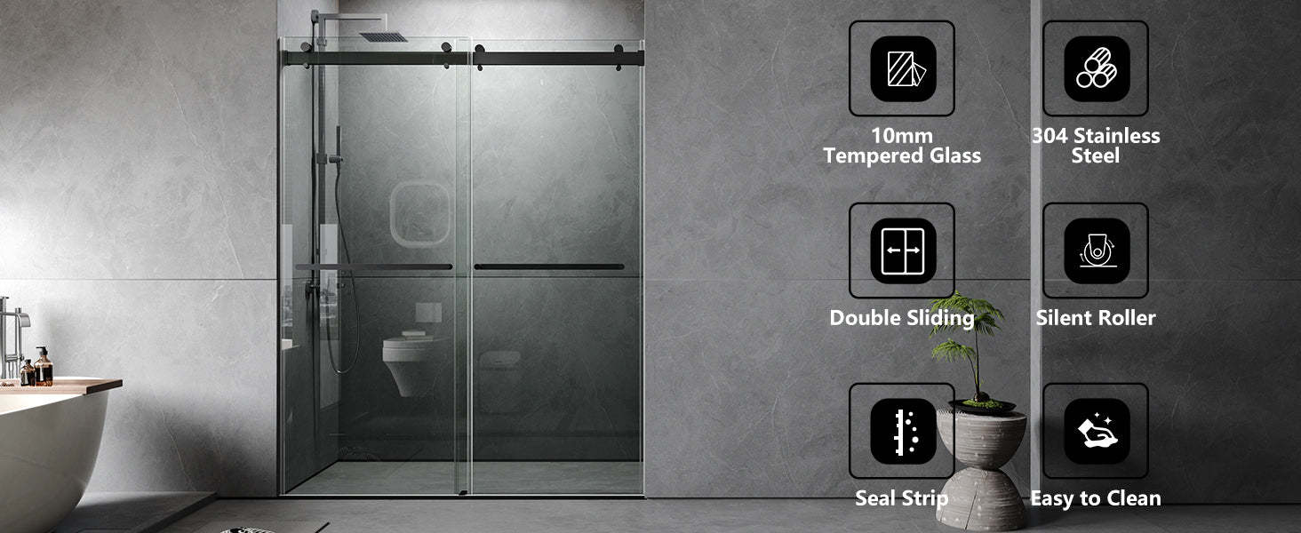 DOUBLE SLIDING: Our shower doors are double sliding shower doors You can choose left or right opening to fit various bathroom floor plans. Plus, all parts and mounting hardware are included in the package for a hassle-free installation process.