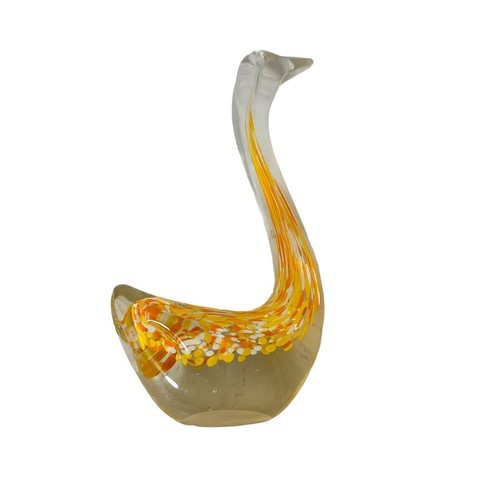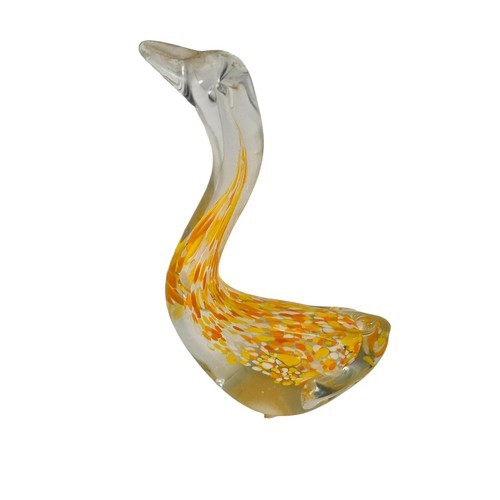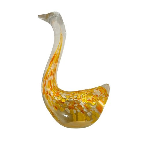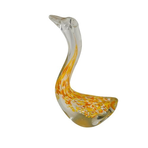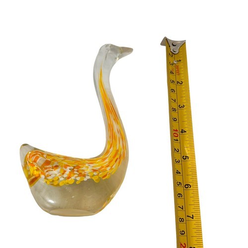 - Goose Hand Blown Art Glass Curved Neck Figurine 7” Clear w/Yellow Paperweight
