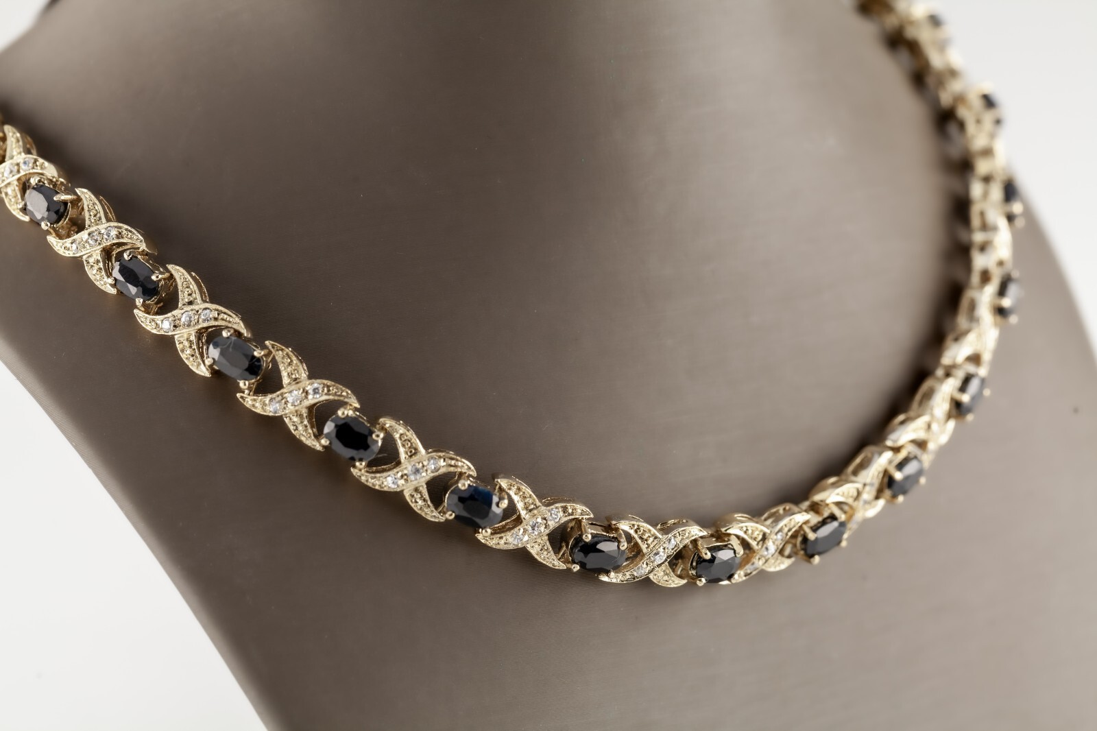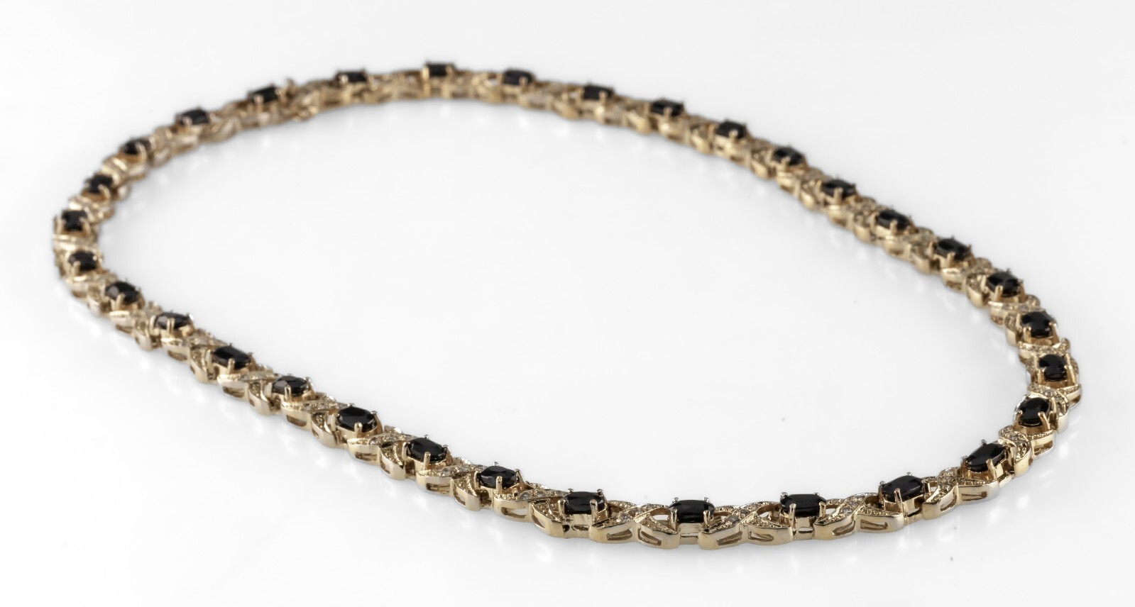 - Gorgeous Gold-Plated Sterling Silver Oval Black CZ and X Station Tennis Necklace