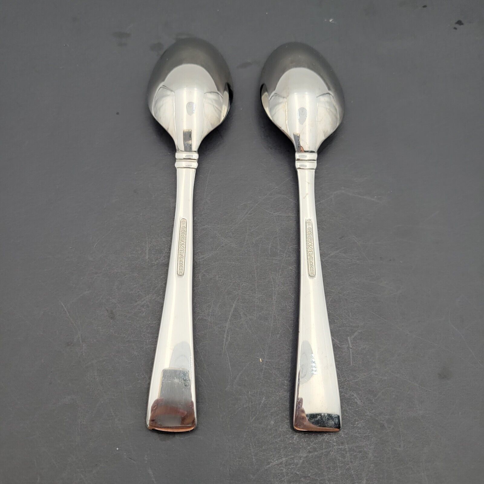 - Gorham COLUMN FROSTED Stainless 2 Oval Soup Spoons 18/8 Korea Flatware