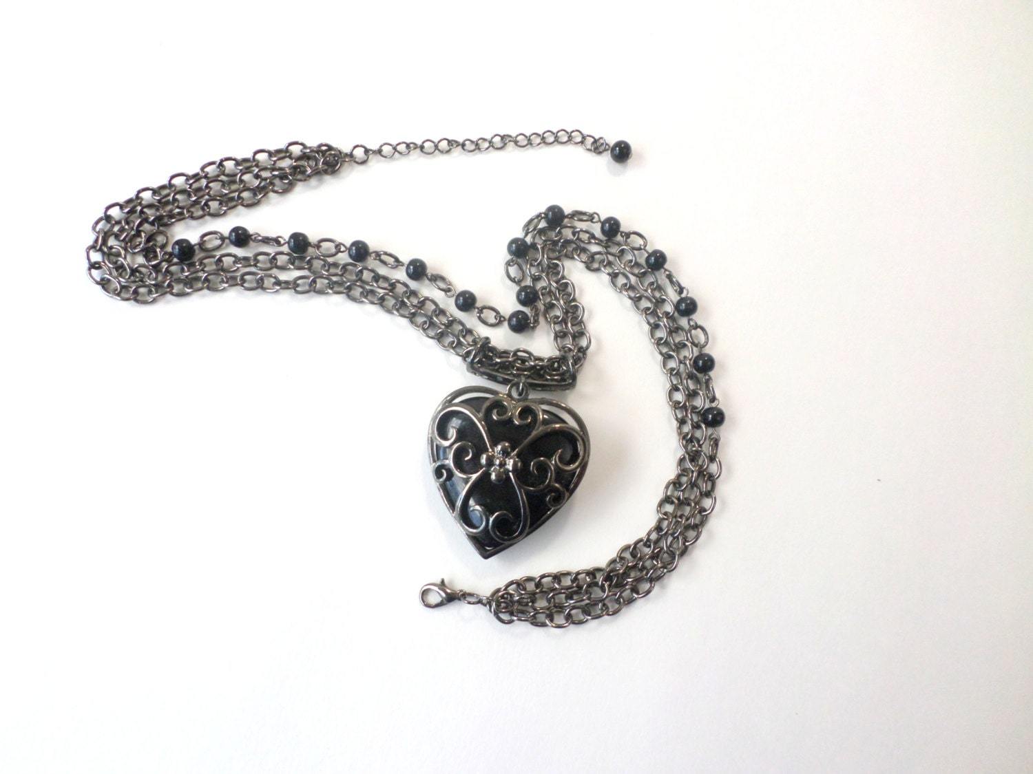 - Goth Black Caged Heart Necklace, Victorian Style Gothic Pendant