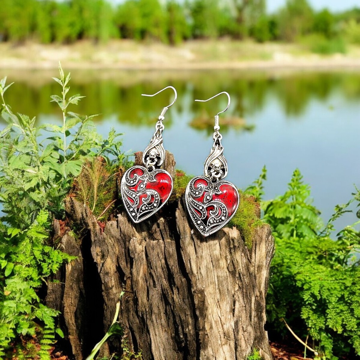 - Gothic Heart Shape Drop Dangle Ladies Earrings Gift Dress Pretty Red Women Teens