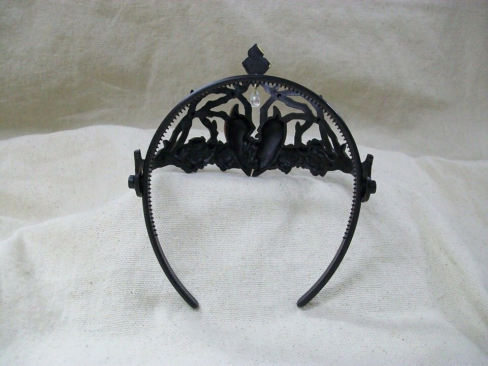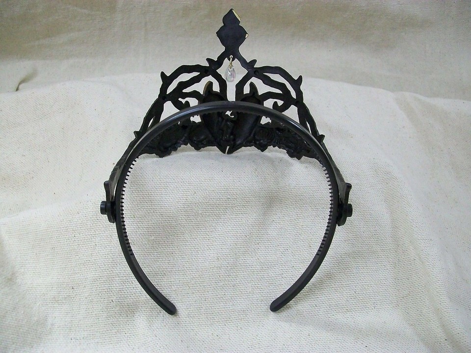 NEW GOTHIC QUEEN OF BROKEN HEARTS COSTUME TIARA COLOR: Black with Red Roses, heart, red plastic gem INCLUDES: 2 pieces - One Tiara One Headband USES: Costume Accessories, Photo Prop, Dressup, School Play or Musical, Masquerade or Costume Ball, Fantasy Dressup, Roleplay, Cosplay, LARP, Anime, etc. Plastic 2 Piece Gothic Themed Costume Tiara. Molded design like black thorny vines with dark reddish roses. The center is adorned by a red broken heart with horns. The vines form a peak to center topped with a red plastic gem and a hanging irridescent droplet shaped jewel. Tiara front snaps on black headband. Easy Assembly. Not intended for use in play by children under 14 years of age. I check them before they leave. But there's a possibility jewels may come loose during shipping. They can be easily reattached with a dab of glue. Could be used with costumes such as: Evil Cupid, Dark Fairy, Faerie, Nymph, Gothic Vampire Princess, Evil Underworld Queen, Grunge Maiden, Wicked Queen, Queen of Broken Hearts, Gothic Alice in wonderland, Malice in horrorland, Wicked Red Queen, Wicked court, Evil Venus, Gothic Goddess of Love gone wrong, She Devil, Punk Rocker, Iracebeth of Crims, Grimhilde, Lady Tremaine, Wicked Stepmother, Stepsister, etc. May Ship in bubble mailer. NOTE: Listing is for one tiara only. Some accessories may be pictured but are not included. DOES NOT INCLUDE MANNEQUIN HEAD. Tiara is new and requires some simple assembly. Individual results may vary. Some Features, Packaging, Colors and Texture may vary slightly from picture. Actual Photos - Alternate Views. ==================================================== ALL SALES ARE FINAL. RETURNS/EXCHANGES ARE NOT ACCEPTED. PLEASE TAKE THIS INTO CONSIDERATION PRIOR TO PURCHASE. GENERAL INFORMATION A LOT OF TIME IS SPENT ON LISTINGS AND AS MUCH INFORMATION IS PROVIDED AS POSSIBLE. I TRY TO INCLUDE ACTUAL PHOTOS WHEN I CAN BUT I ALSO USE MANUFACTURER'S PHOTOS. SOMETIMES THE MANUFACTURER'S PHOTO VARIES FROM THE ACTUAL ITEM. PLEASE SEE ALL IMAGES. IF SOMETHING IS UNCLEAR, ASK QUESTIONS. MAKE NO ASSUMPTIONS - AS RETURNS ARE NOT ACCEPTED. COLOR VARIANCE: EXACT COLORS CANNOT BE GUARANTEED. DIFFERENT SCREENS VARY IN DISPLAYING COLORS. ALSO PEOPLE SEE COLORS DIFFERENTLY (EX.-I SEE BLUE,U SEE BLACK,ETC) PLEASE KEEP THIS IN MIND AS I DO NOT KNOW WHAT YOU ARE SEEING. SOMETIMES MY CAMERA DOESN'T CAPTURE SOME COLOR TONES CORRECTLY. IF A COLOR IS OFF LOOKING ON MY DISPLAY, I'LL NOTE IT. IF COLOR IS REAL IMPORTANT, I'D SUGGEST MAKING YOUR PURCHASE AT A STORE IN PERSON. PLAGIARISM: I DO NOT SHARE MY IMAGES OR LISTING CONTENT. IF MY IMAGES ARE SEEN ON ANOTHER WEBSITE OR LISTING THAT DOES NOT BELONG TO ME, THIS IS DONE WITHOUT MY PERMISSION. IF I FIND THAT MY LISTINGS ARE BEING INFRINGED UPON, I WILL TAKE APPROPRIATE ACTION. I HAVE HAD MY LISTINGS PHOTOS AND DESCRIPTIONS COPIED FROM IN THE PAST. PLEASE DO YOUR OWN WORK AND NOT PLAGIARIZE OTHERS. BUYER'S REMORSE: ALL SALES ARE FINAL! SO PLEASE SHOP AROUND BEFORE YOU BUY. I MAY NOT BE THE CHEAPEST BUT I PUT A LOT OF EFFORT IN MY LISTINGS. I DON'T MATCH PRICING. I DON'T ACCEPT OFFERS UNLESS THE ITEM IS LISTED THAT WAY. COMMUNICATION: PLEASE SEND ALL CORRESPONDENCE THROUGH THE MARKETPLACE MESSAGE / MAIL SYSTEM. I DO NOT OPEN EMAILS FROM UNKNOWN SENDERS. AVAILABILITY: MY ITEMS MAY BE LISTED ACROSS SEVERAL SELLING MARKETPLACES, THEREFORE, AVAILABILITY MAY VARY. ORDERS ARE PROCESSED ON A FIRST COME FIRST SERVE BASIS. CANCELLATIONS MAY OCCUR IF STOCK HAS BEEN DEPLETED PRIOR TO ORDER PLACEMENT. SHIPPING PLEASE MAKE SURE YOUR SHIPPING ADDRESS IS CORRECT AND COMPLETE INCLUDING ANY APARTMENT, SUITE, OR UNIT NUMBERS. ADDRESS CANNOT BE CHANGED OR MODIFIED ONCE ORDER HAS BEEN PLACED OR ITEM HAS BEEN SHIPPED. UNCLAIMED, REFUSED, UNDELIVERABLE, OR ANY PARCEL RETURNED TO SENDER REGARDLESS OF REASON WILL BE SUBJECT TO A RESTOCKING FEE. DOMESTIC PARCELS WILL BE SHIPPED WITH DELIVERY CONFIRMATION. EXPRESS PARCELS MAY REQUIRE A SIGNATURE FOR DELIVERY. PARCELS CANNOT BE GUARANTEED BY CERTAIN DATES. ALL SHIPPING OPTIONS CAN BE SEEN UNDER SHIPPING TAB. ESTIMATES ARE DETERMINED BASED ON ZIP CODE. FOR MOST ITEMS EXPEDITED OPTIONS ARE OFFERED.IF DOMESTIC FREE SHIPPING IS OFFERED, IT IS DONE WITH AN ECONOMIC SLOWER SHIPPING CLASS. PLEASE CHOOSE A SHIPPING CLASS IN ACCORDANCE WITH YOUR TIMING NEEDS. DUE TO INCREASED MAIL VOLUME, PLEASE ORDER EARLIER AND ALLOW ADDITIONAL TIME FOR DELIVERY AROUND HOLIDAYS. DELIVERY / RECEIPT CANNOT BE GUARANTEED. I HAVE NO CONTROL OVER THE PARCEL ONCE IT LEAVES MY HANDS. SHIPPING WILL BE DONE MONDAY THROUGH FRIDAY EXCLUDING ANY FEDERAL HOLIDAYS. I END SHIPPING FOR THE DAY AROUND 9AM EASTERN STANDARD TIME. INTERNATIONAL SHIPPING DUE TO EXTENSIVE SHIPPING CHANGES, I NO LONGER SELL OR SHIP PARCELS INTERNATIONALLY. Powered by SixBit's eCommerce Solution