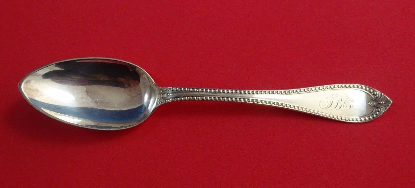 Gothic by Shreve coin silver Place Soup Spoon, 7 1/4". It is monogrammed (monos vary) and is in excellent condition.