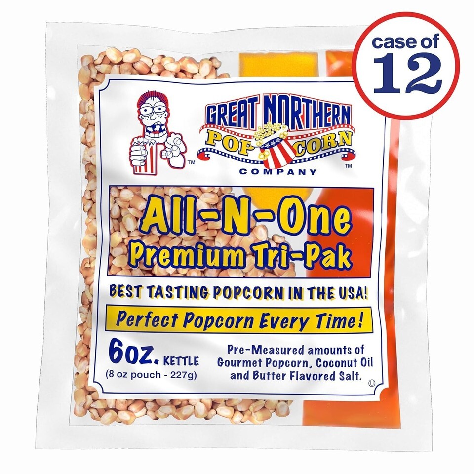 With our Gourmet Popcorn - Case of 12 Easy-to-Use 6oz Kits, your ultimate movie night experience is only a popcorn machine away. Designed for flavor and convenience, each pack ensures you create perfect popcorn every time without the mess. Enjoy the distinctive taste of premium popcorn while, simultaneously, impressing your guests with minimal effort.