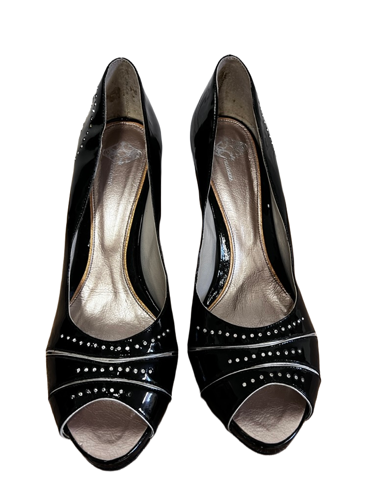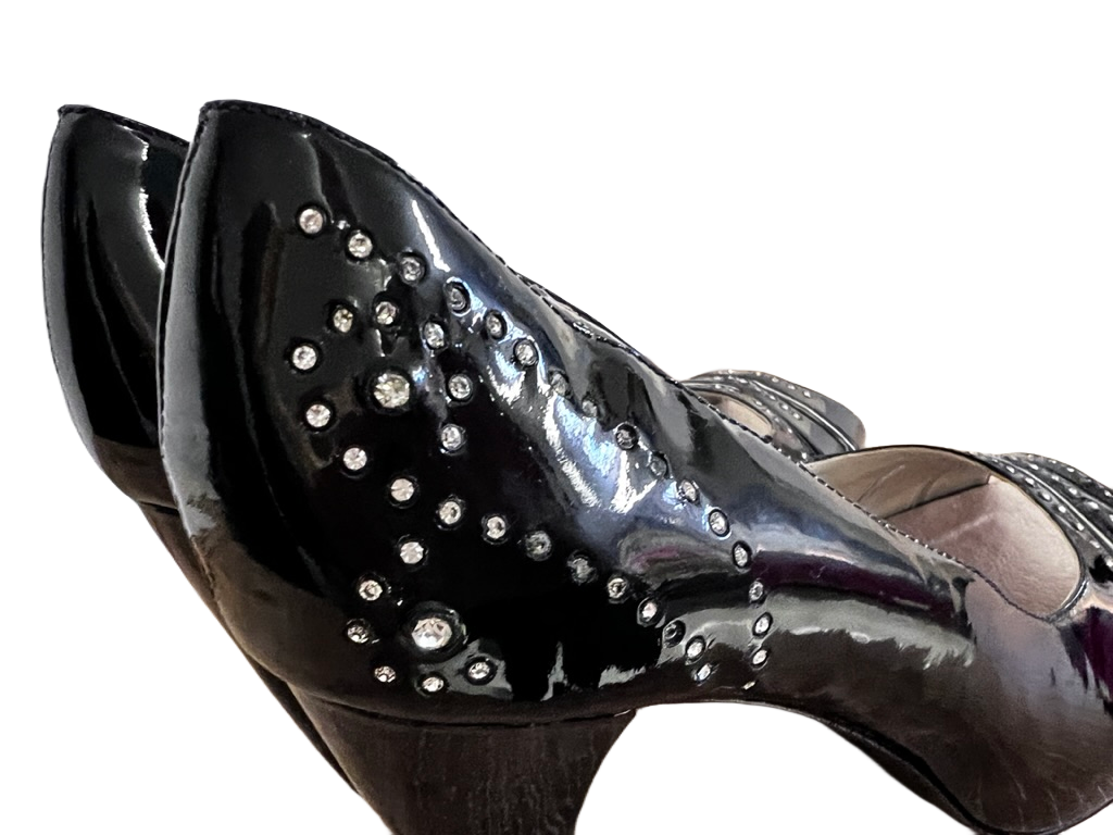 Gracienne Pump Stiletto Heels Black Patent Leather Peep Toe Platform Crystal 10