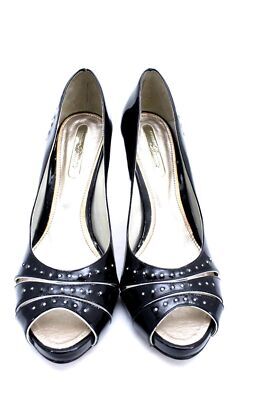 - Gracienne Pump Stiletto Heels Black Patent Leather Peep Toe Platform 9 NEW