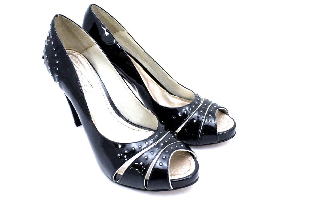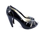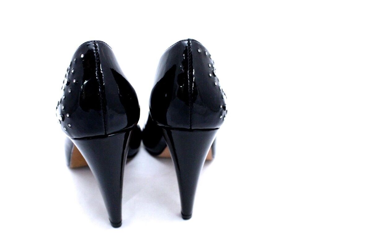 Gracienne Pump Stiletto Heels Black Patent Leather Peep Toe Platform Crystal 9