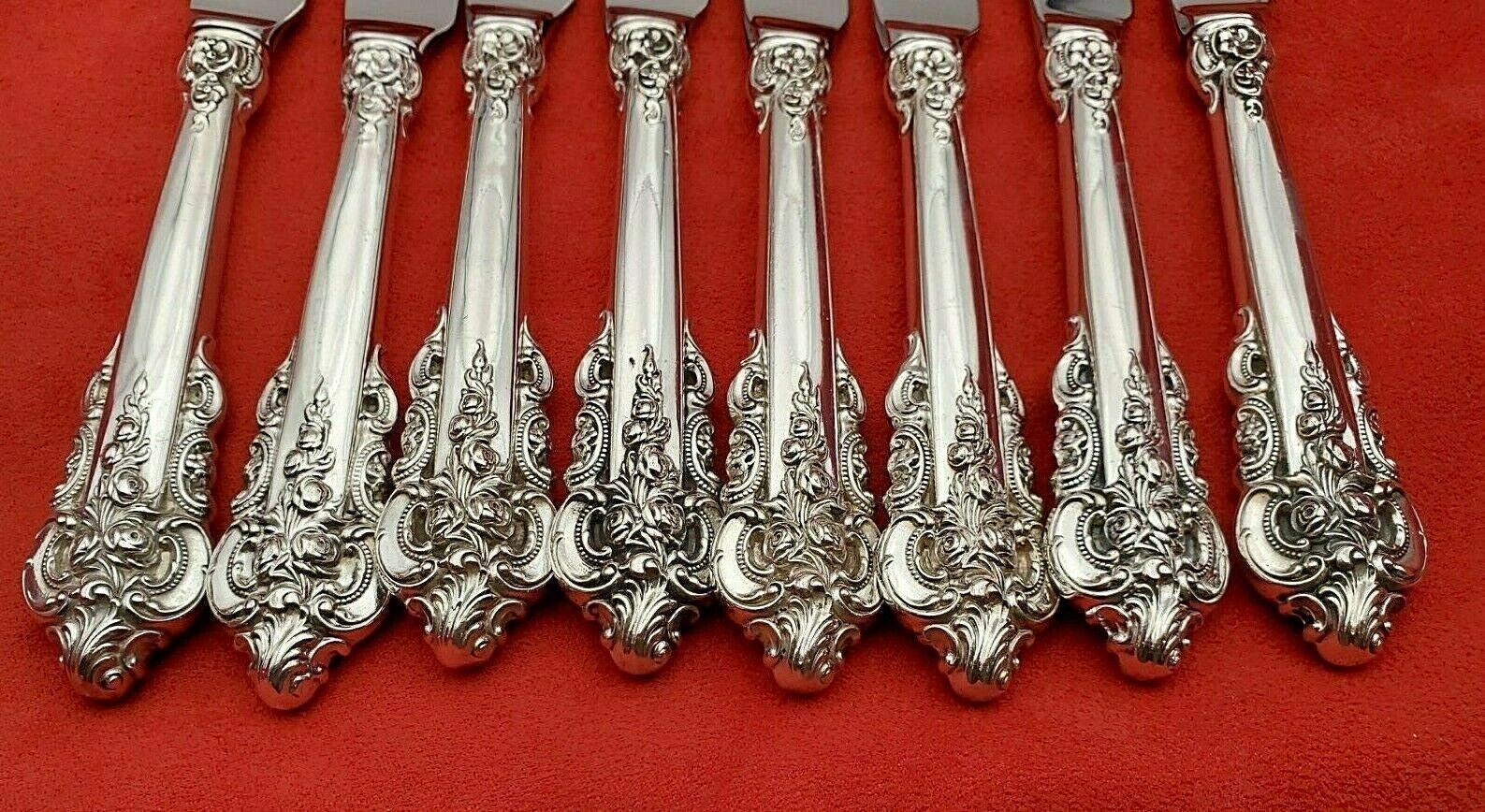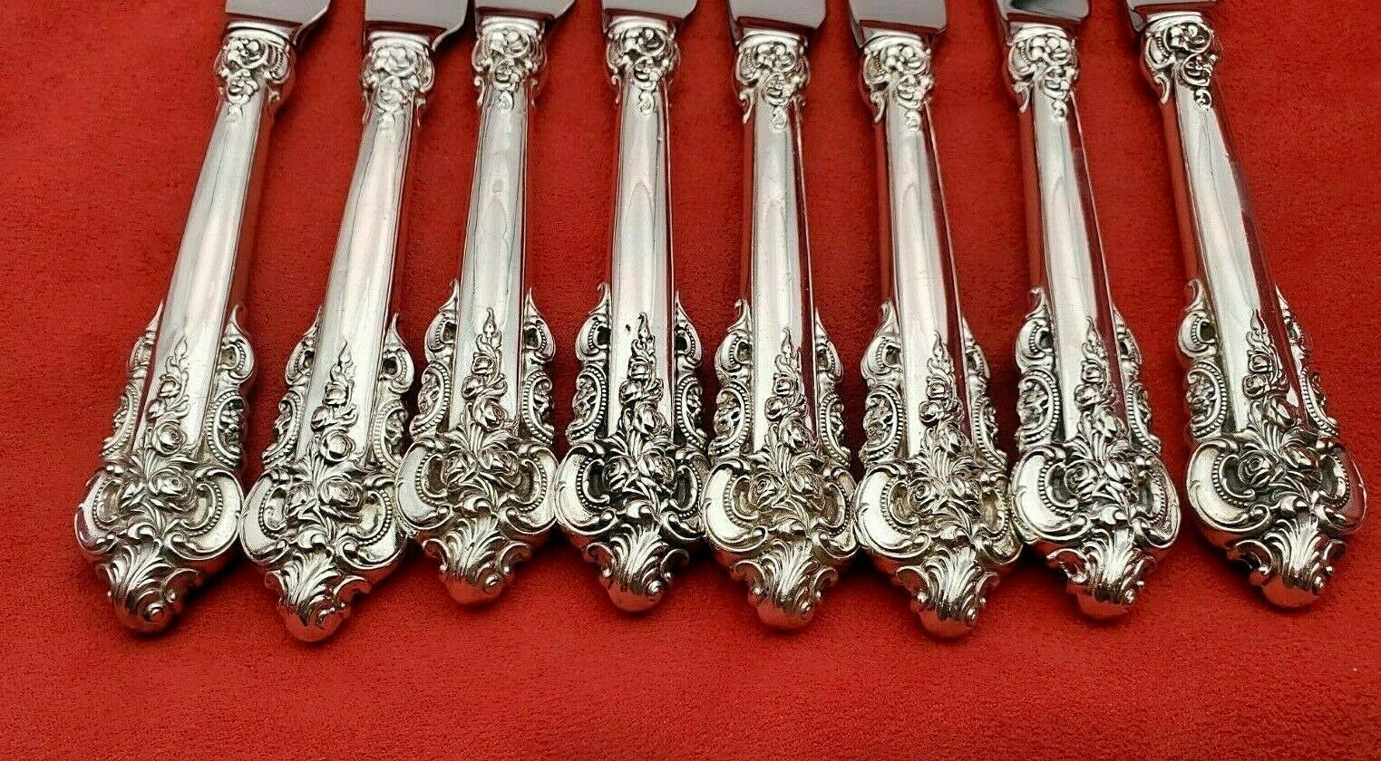 - Grande Baroque Wallace Sterling Silver Steak Knife Set 8 Custom 9 1/4" Serrated