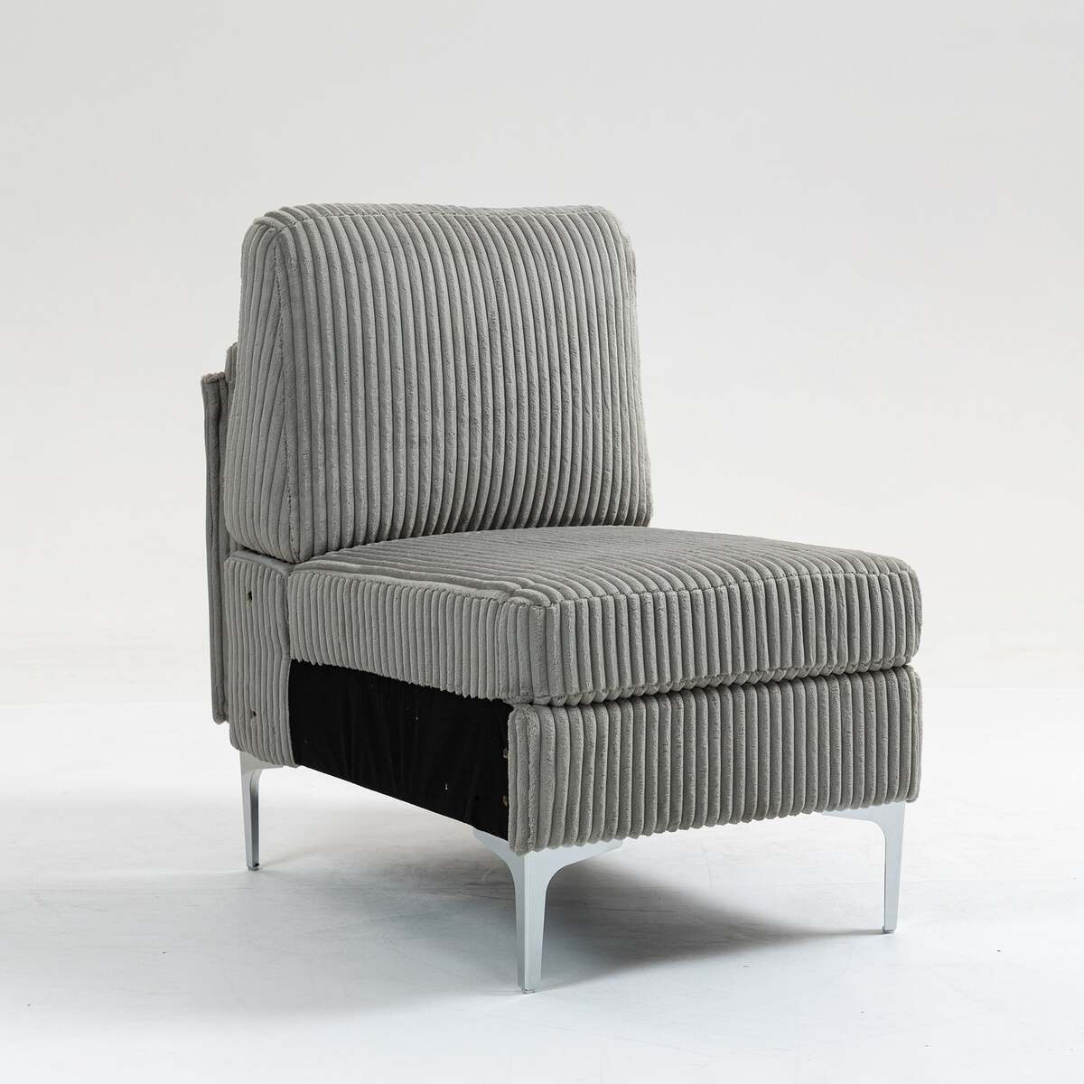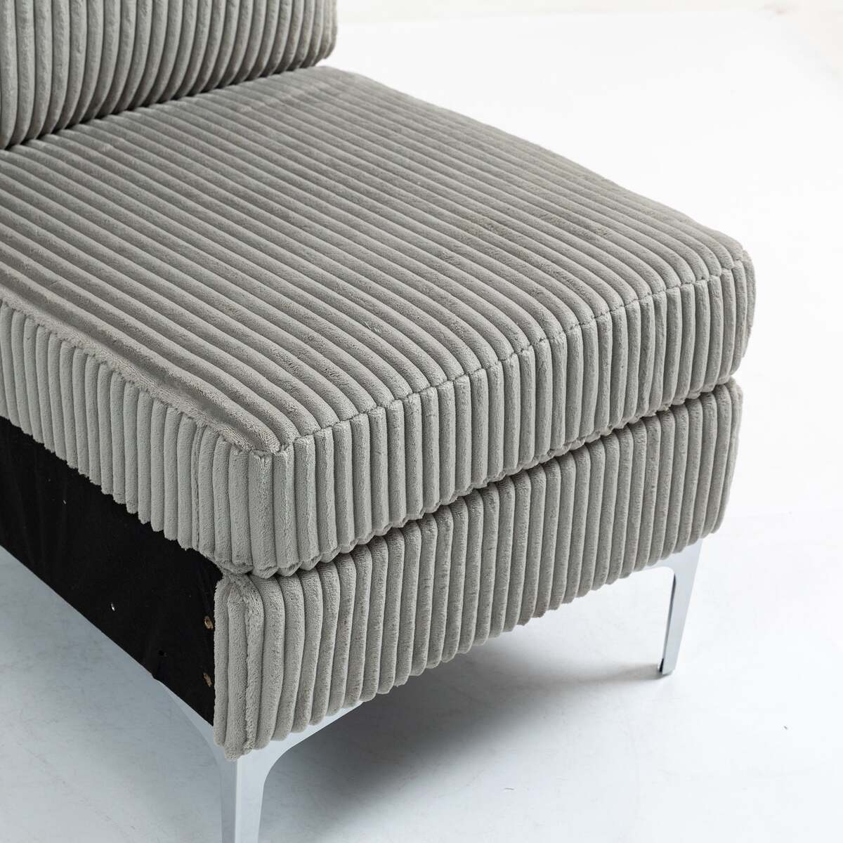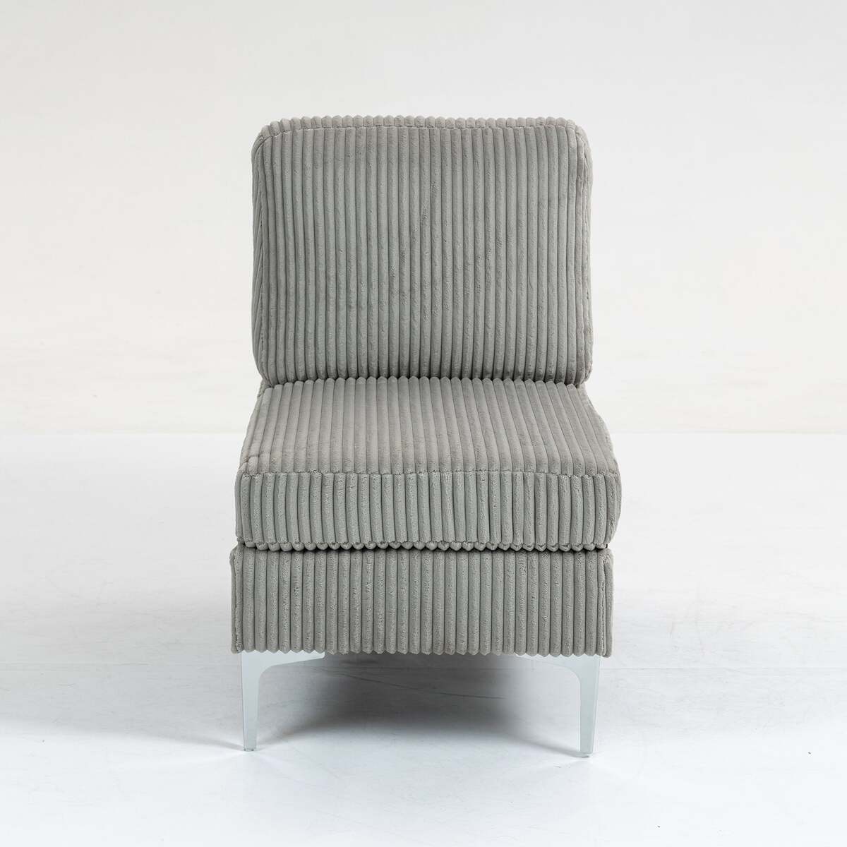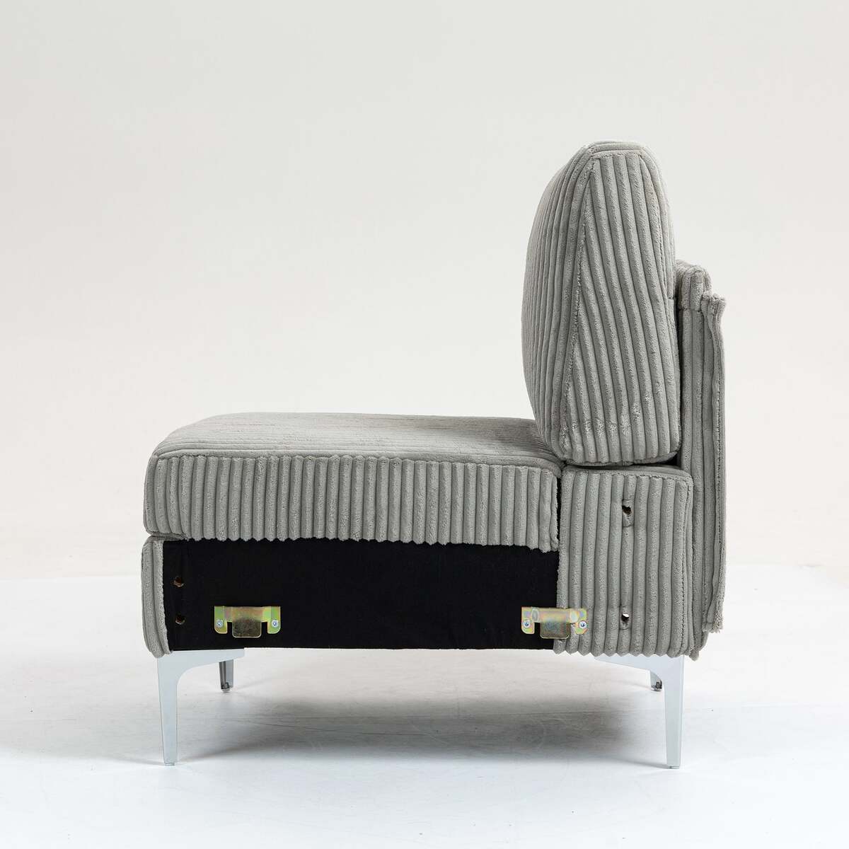 - Gray Modular Armless Corduroy Sectional Sofa Chair - Accent Seat