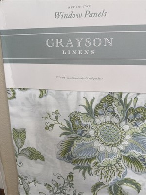 - Grayson Linens Aqua Blue Green White Peacock Floral 2 Window Panels 96” ~New~