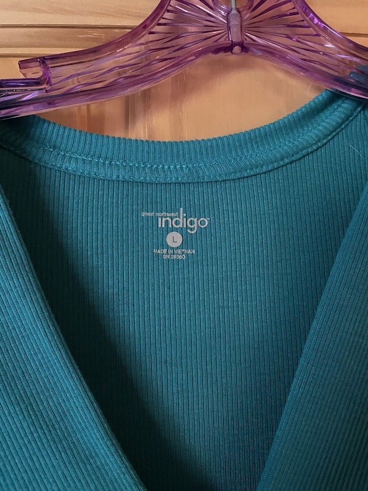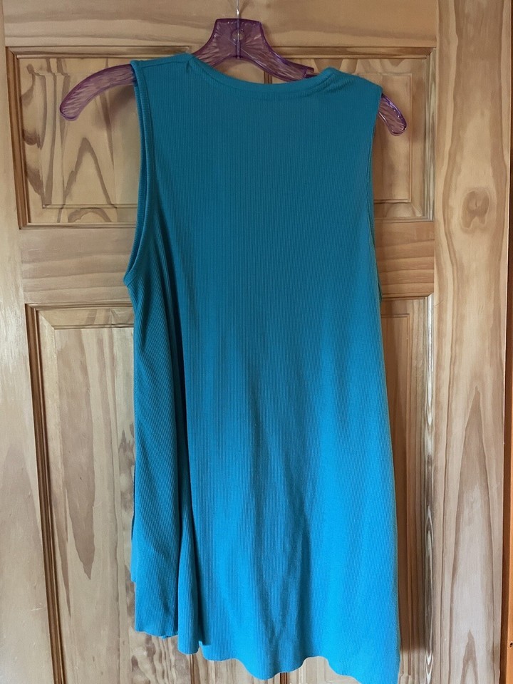 This Great Northwest indigo sleeveless top is perfect for any woman's wardrobe. The top is size large and has a regular size type. It features a beautiful blue color that is sure to catch the eye. The tank top style is perfect for summer weather and the sleeveless design allows for easy movement. The top is pre-owned but in great condition, ready to be worn with your favorite pair of jeans or shorts. Don't miss out on this chic addition to your wardrobe!