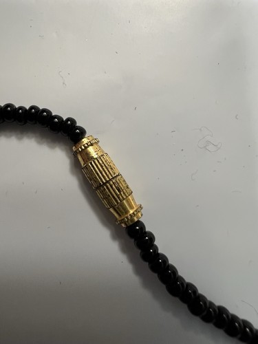 - Green, Cream And Black Bead Bronze Color Medallion Pendant 22” Necklace