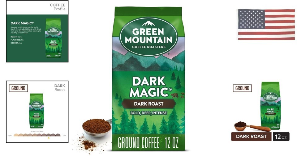 Green Mountain Coffee Roasters Dark Magic Ground Coffee, Dark Roast, 12 oz Bag
