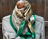 - Green and Tan Floral Printed Western Southwestern Wild Rag Scarf Accent