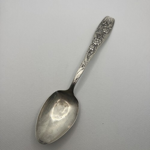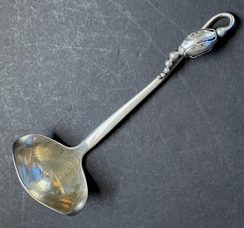 Sterling Silver BERRY SPOON W/ LEAVES 9" in the pattern GRETA BY O. MOGENSEN. It is NOT monogrammed and is in excellent condition.