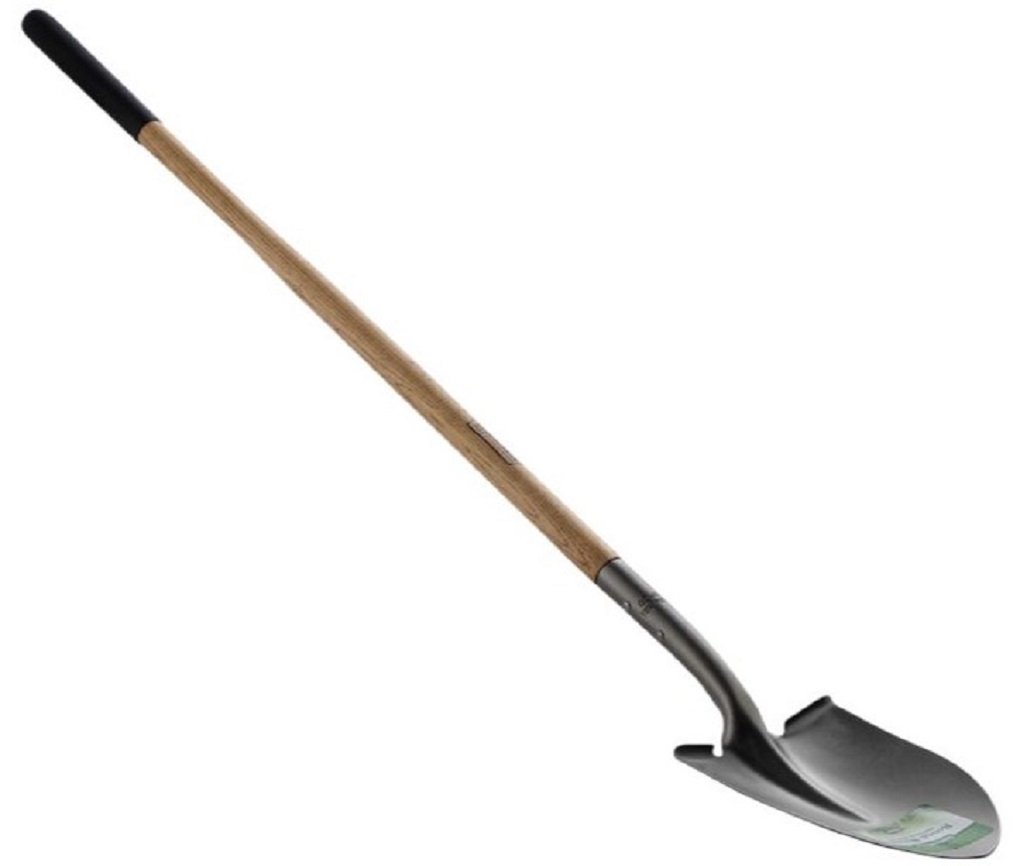 Steel head with a lacquered finish for durability Round point shovel has a smooth hardwood handle for control Non-slip end grip for added comfort Designed to make digging easy Heavy-duty steel round point shovel