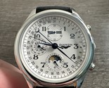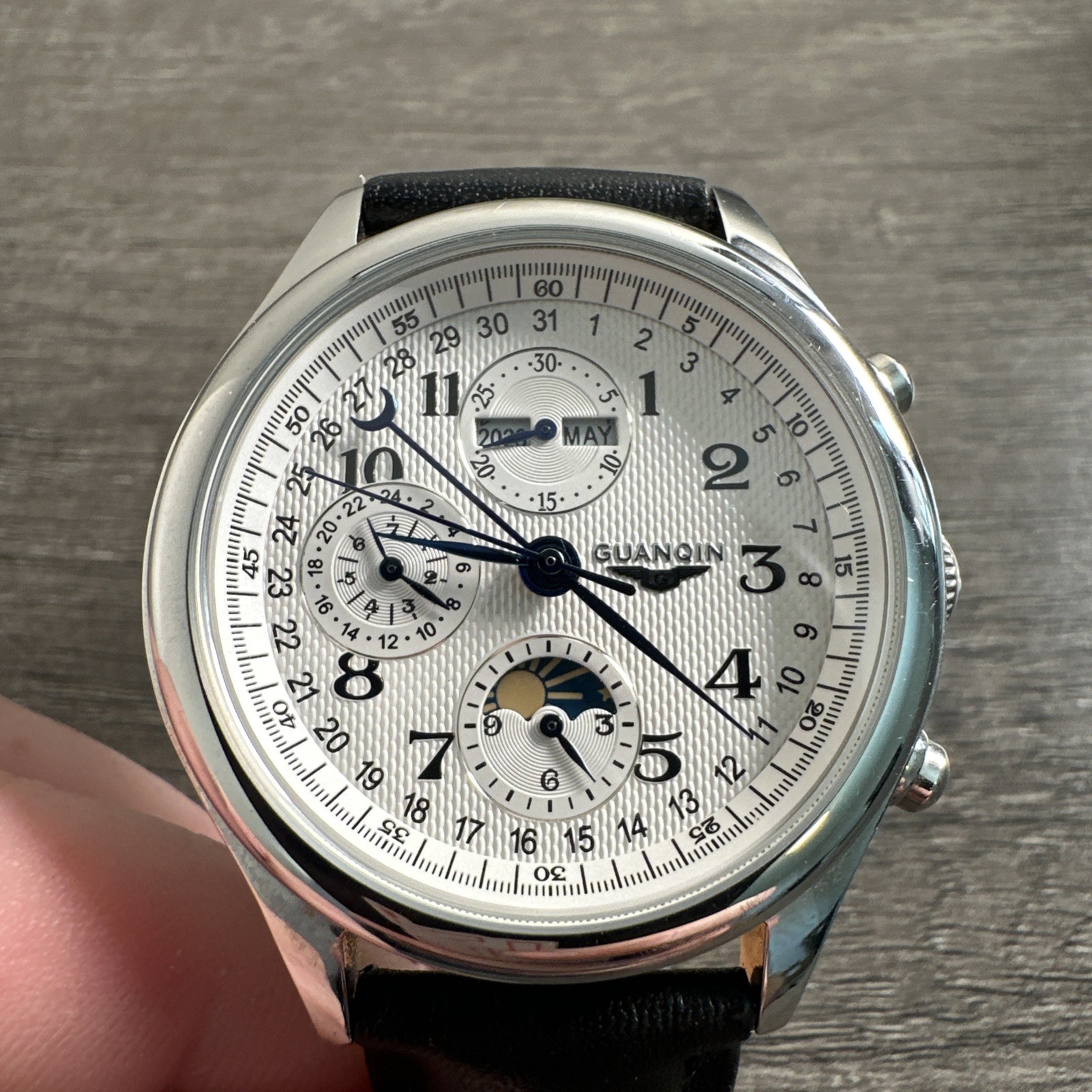 Guanqin Automatic Watch Silver Tone Blue Accent Black Leather Band 40 MM