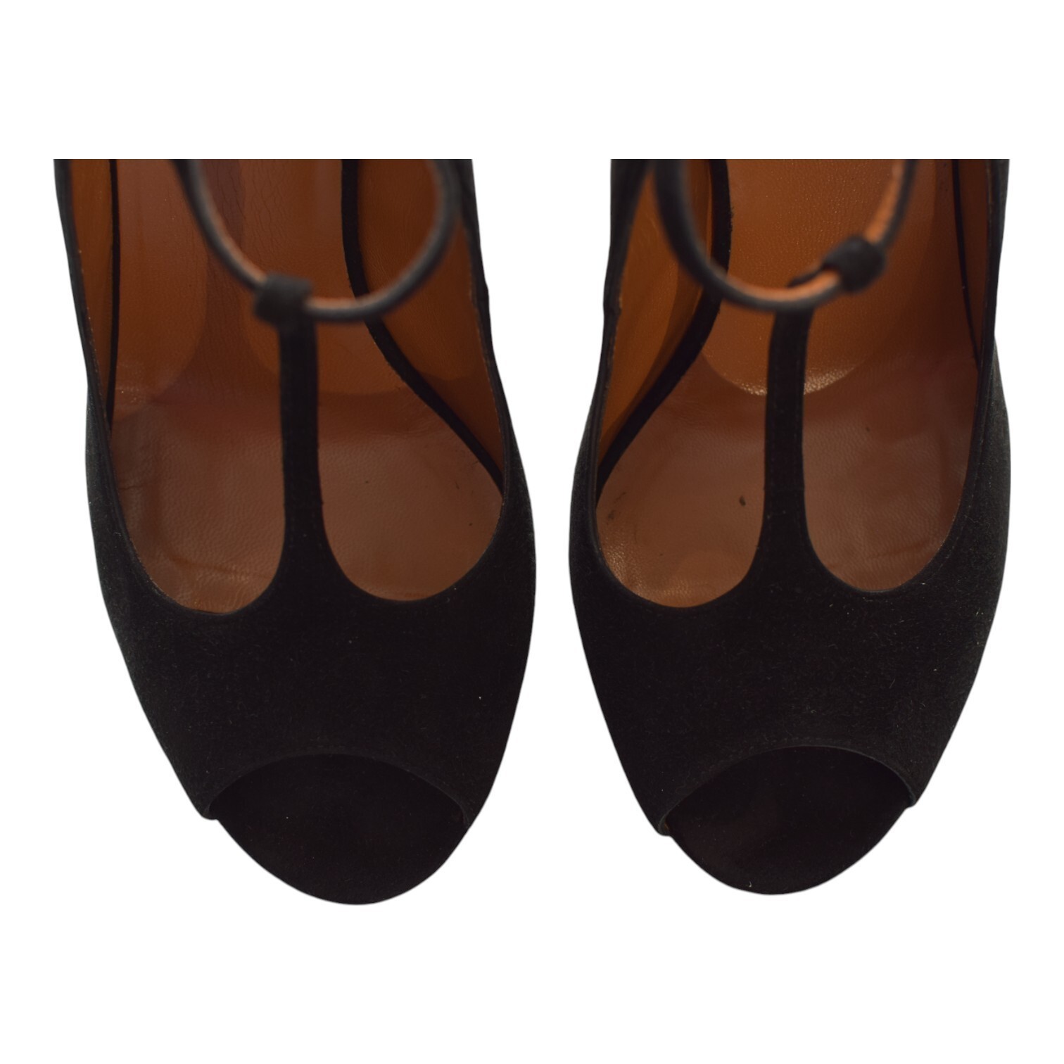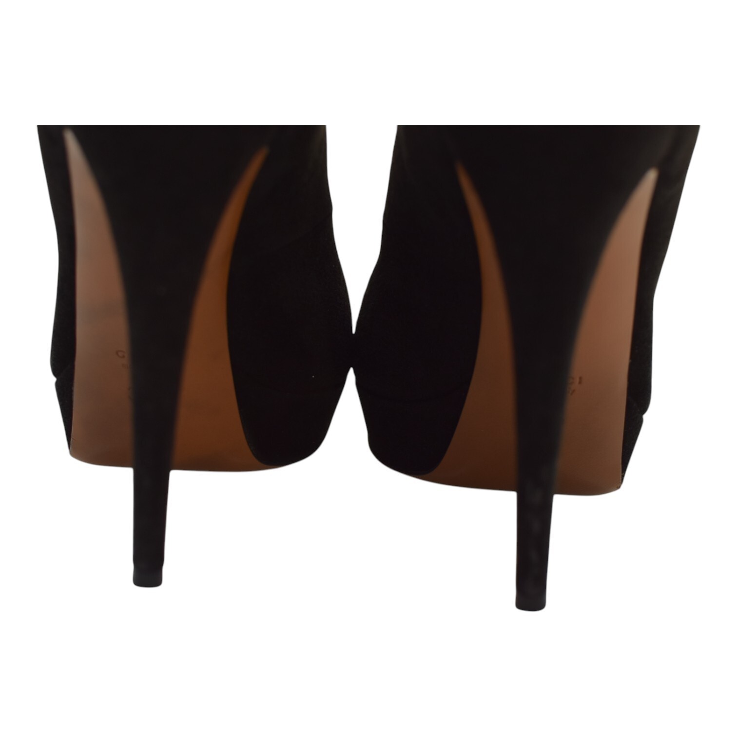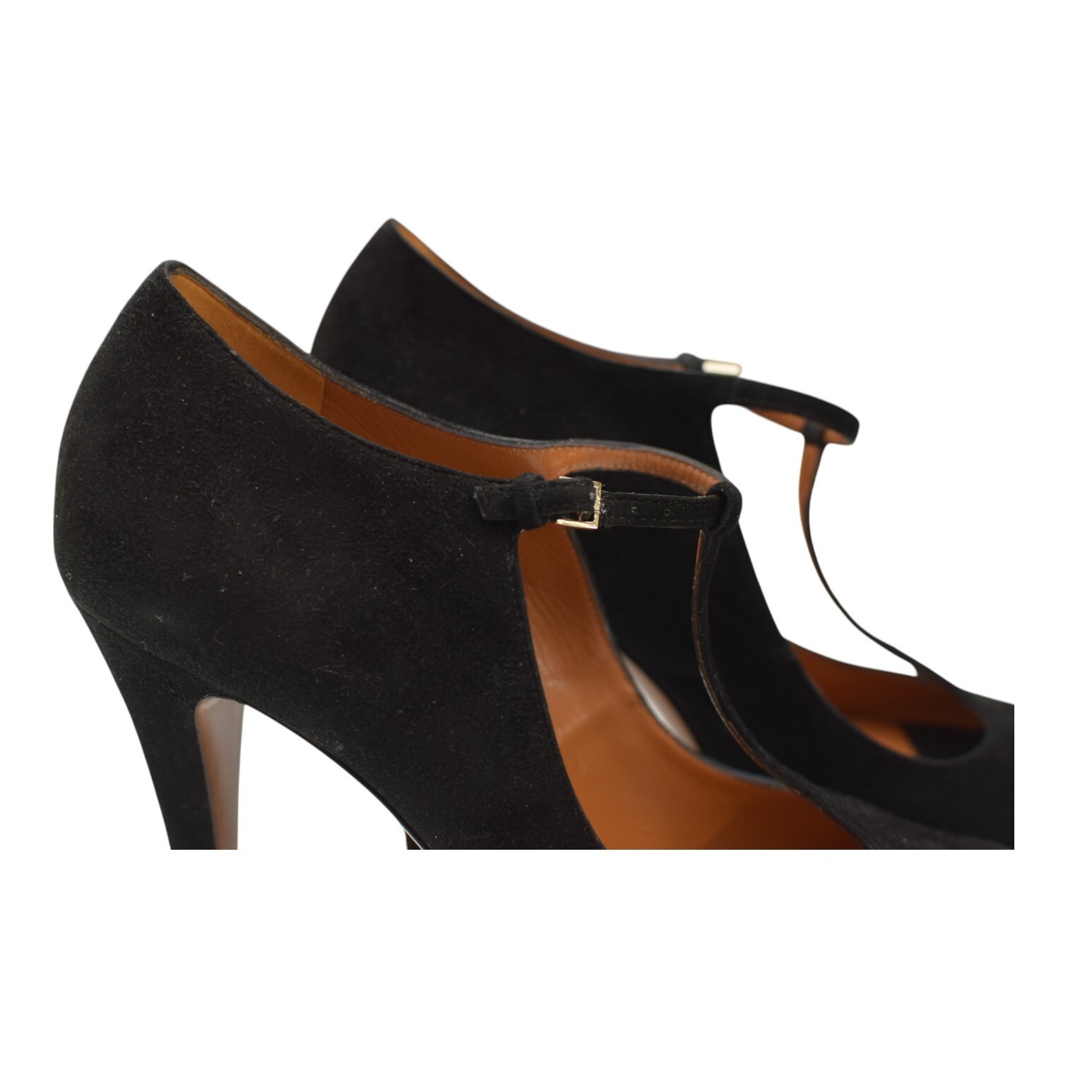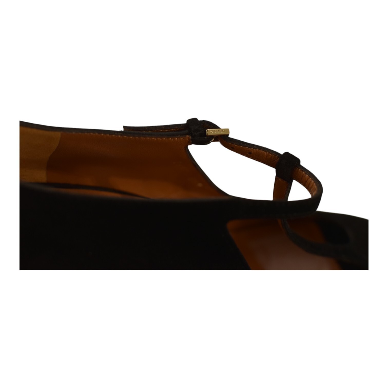 - Gucci Black Suede Leather Mary Janes Peep toe Heel Platform Pumps sz 39,5 US 9,5