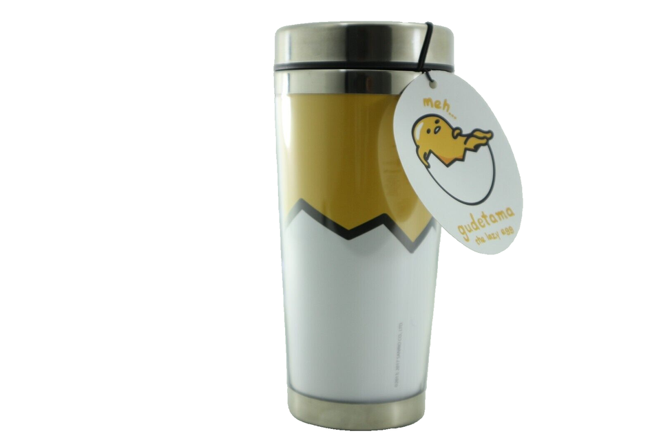 - Gudetama Travel Mug. - Stainless Steel Mug. - Color: Yellow. - UPC: # 045544954686 - Official Licensed Product.