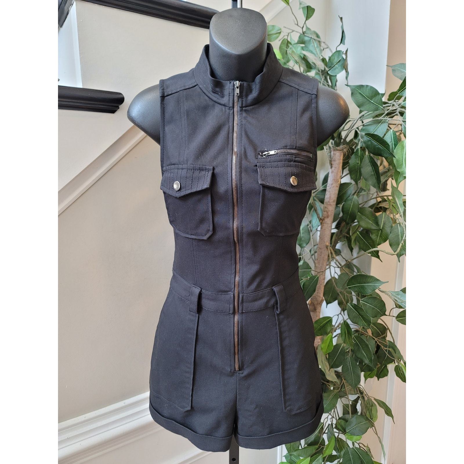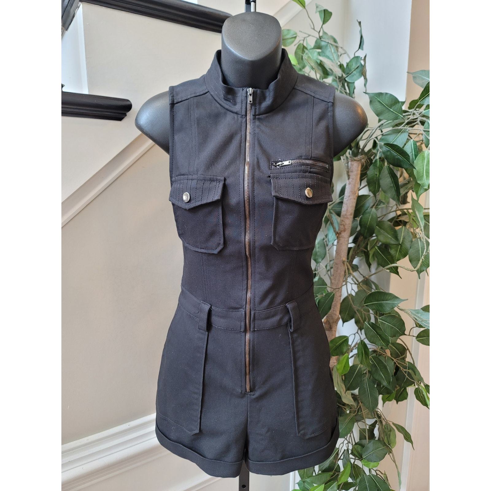 - Guess Romper Women Small Black Sleeveless Zip Front Utility Pockets Casual Chic