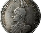 Esta exquisita Medalla de Fantasía Guillermo II, que representa el contexto historico del Africa Oriental Alemana en 1894, es un artefacto notable de la era del colonialismo aleman. El anverso presenta un llamativo retrato del Kaiser Guillermo II, que reino sobre Alemania desde 1888 hasta 1918. Retratado con su atuendo militar ceremonial, completo con un casco adornado con aguila, Guillermo II simboliza la fuerza y ??la autoridad del Imperio Aleman durante un momento crucial de su historia. Acompaña a la imagen la inscripcion "Guillemus II Imperator", que realza la majestuosa representacion del reinado del emperador.