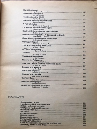 French Cannon collectors, Shotgun patterns, Ithaca?s Mag 10, Steyr SSG Sniper Rifle, Custom guns, knife makers, hand loading the .30-30, squirrel rifle, ballistic nomograph, american Bulleted cartridges and more. This book is in good condition showing small signs of where there is a small tear on top of the front cover, front and back cover has some wrinkling. Combined shipping available on all purchases