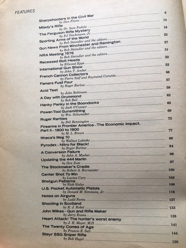 Sharpshooters in the Civil War, Sporting arms of the world, power tool gunsmithing, Pyrodex Nitro for black powder, Updating the .444 Marlin, U.S. Pocket Automatic pistols, Airguns, Ruger Rarities,